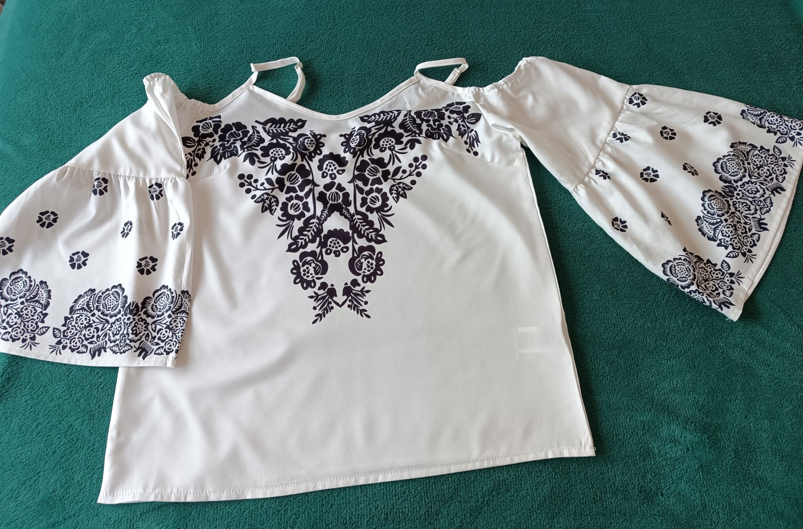 Biela halenka s kvetinovým vzorom, na ramienka, zn. Shein, velk. 38/M, dĺžka - 58cm, šírka ( pod průramkami ) - 48cm, nenosená. V super stave.