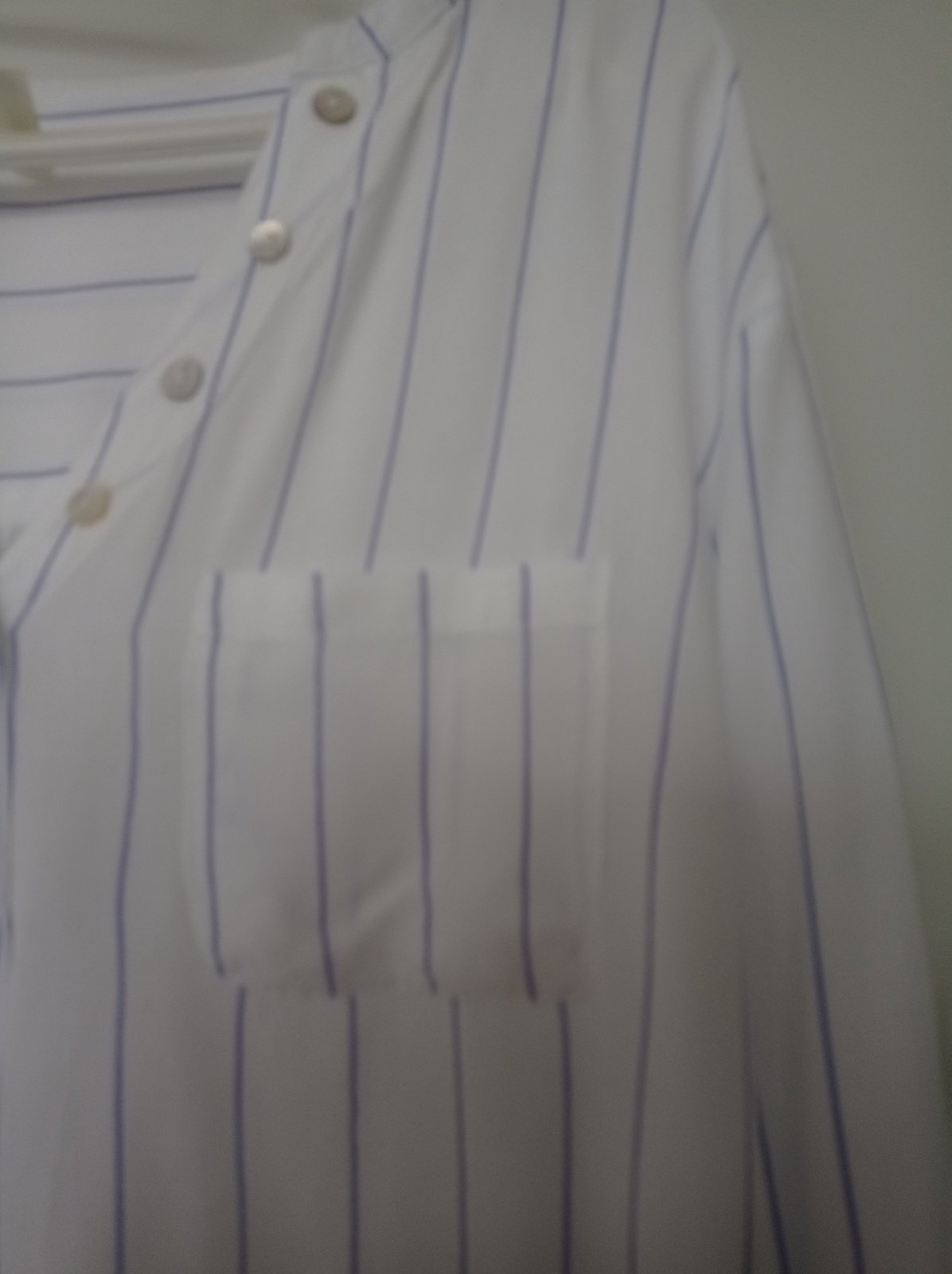Bíla košile s fialovými proužky,viskóza,lehounka,vel 38, rukávy rool up rukávy, přední délka 62cm, průramky 49cm,zadní délka 68cm.