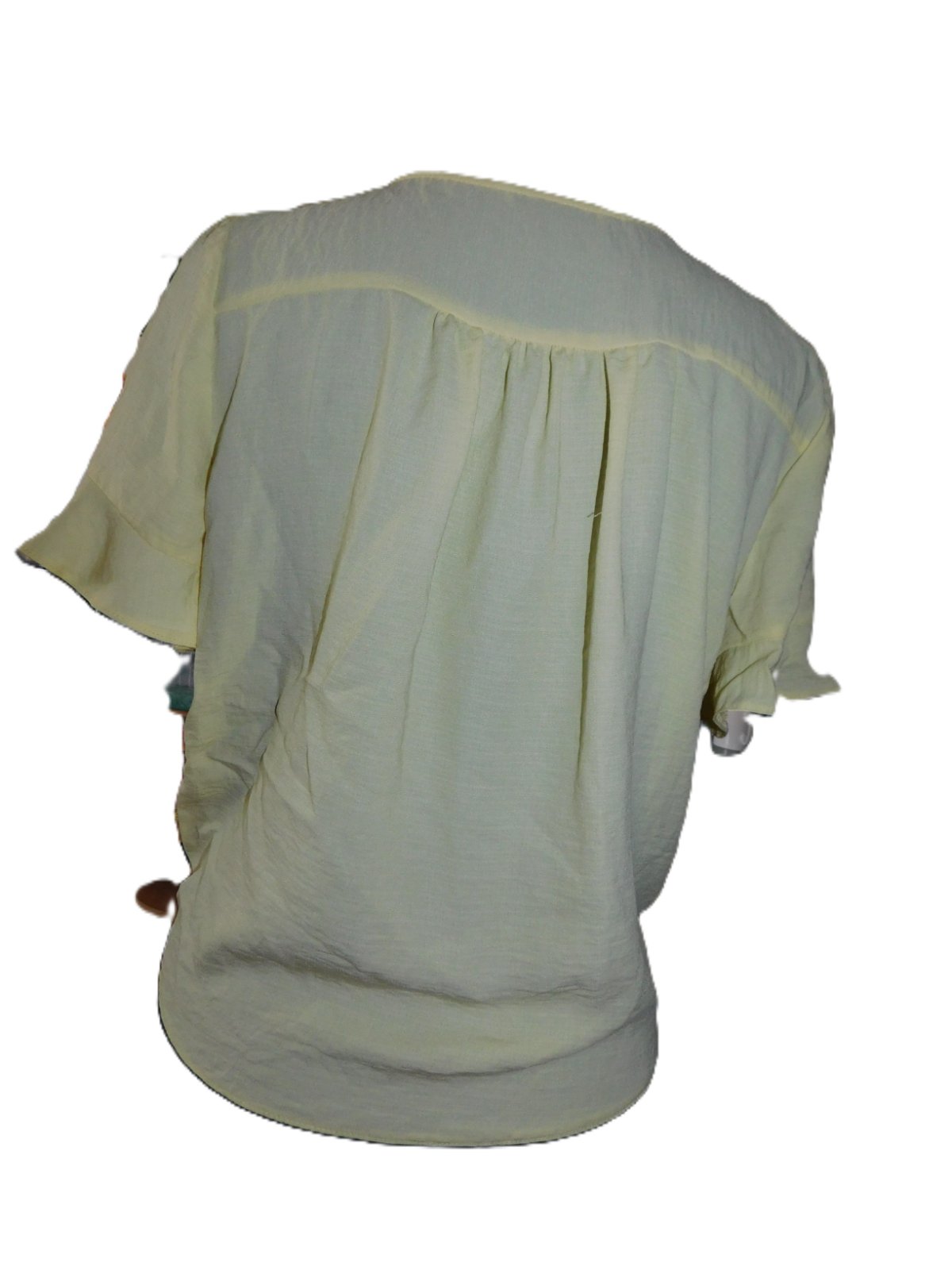 Krásná dámská blůzka se zavazováním u dolního okraje ... celopropínací .... nošená, bez dírek a bez žmolků ... jen na předním díle jsem našla maličkou červenou tečku a pak ještě dva malinkaté flíčky, nezkoušela jsem prát .... není to nic velkého, ale raději uvádím ... jinak je v pořádku .... vyrobeno ze 100% polyesteru ... velikost psaná UK 12 - EU 40 ... budu uvádět vel. 40 ...