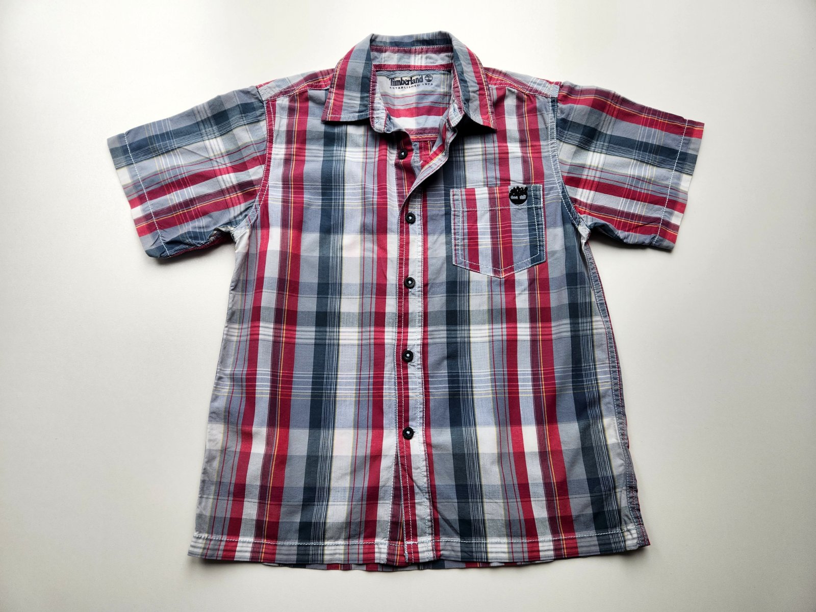 Kostkovaná košile v šedo-růžových barvách zn. TIMBERLAND, knoflíky, kapsa s výšivkou.