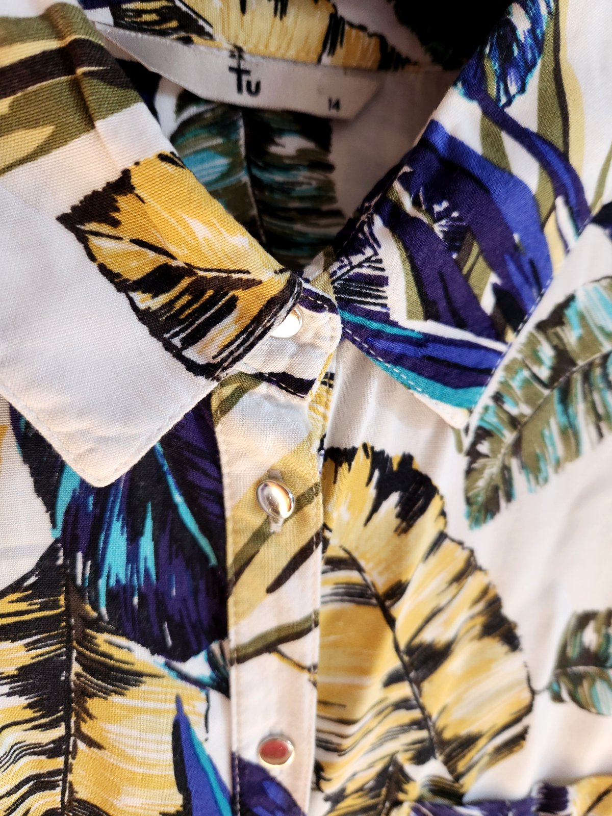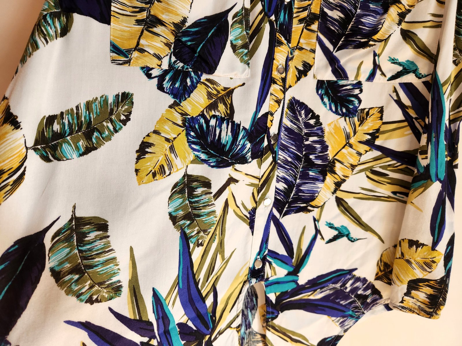 Krémová halenka s barevným vzorem zn. TU, kovové knoflíčky, kapsy.