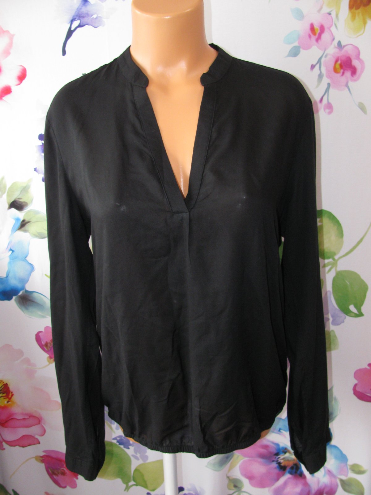 Luxusní dámská halenka, spodní lem pružný do gumy, konce rukávů se zap. do manžety, Top stav bez vady. Málo nošená velmi šetřená. Halenka je z velmi tenkého plátýnka, štítek stran materiálu ustřižen.