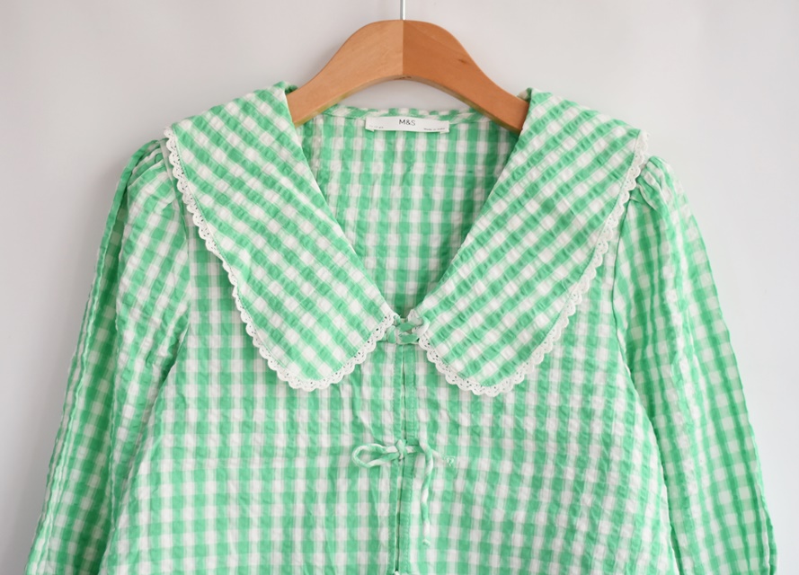 Bílo zelená blůzka. Plátno, 3/4 rukáv.