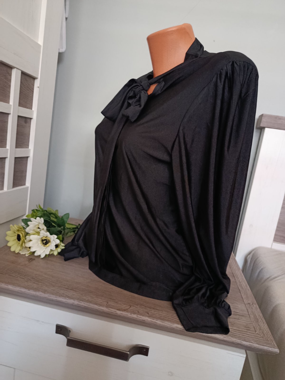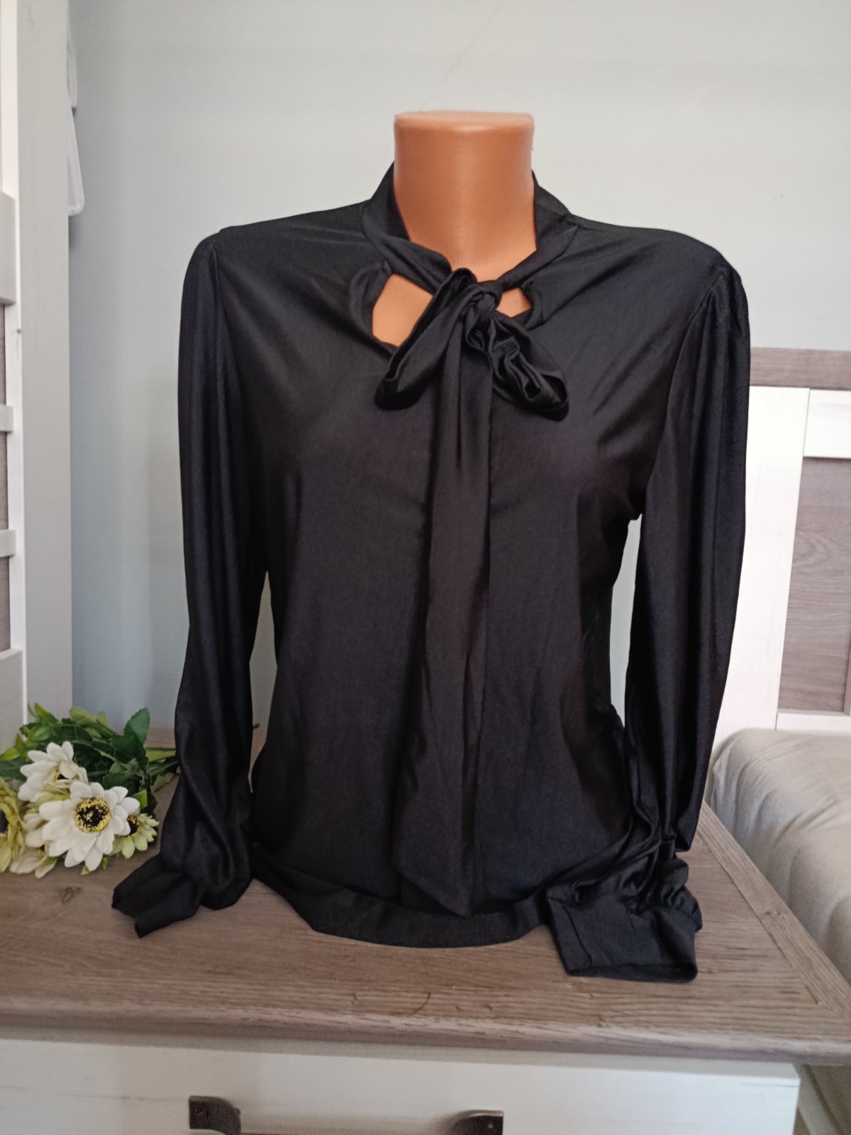 Super splývavá halenka s úvazem kolem krku. Možno uvázat na mašli, nebo jen na uzel. Konce rukávů jsou do manžety. Super kousek do společnosti, kanceláře, na schůzku nebo na denní nošení :-) Míry : délka 61 cm, pas 2 x 47 cm, průramky 2 x 50 cm a délka rukávu od krku je 72 cm. Halenka i pruží ...Materiál : 95 % polyester a 5 % elastanu. Poštovné - balíkovnou za 85 Kč nebo zásilkovnou za 90 Kč