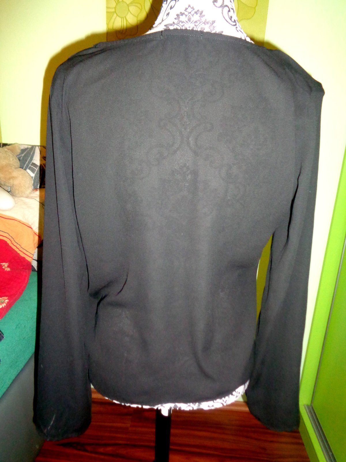 DÉLKA 53 CM JEDNA STRANA - 64 CM DRUHÁ STRANA - JAKOBY DO ŠIKMA A PAK STAŽENÍ DO UZLÍKU, ŠÍŘKA 2X56 CM, RUKÁV OD VÝSTŘIHU 71 CM - ROZŠIŘUJÍCÍ
