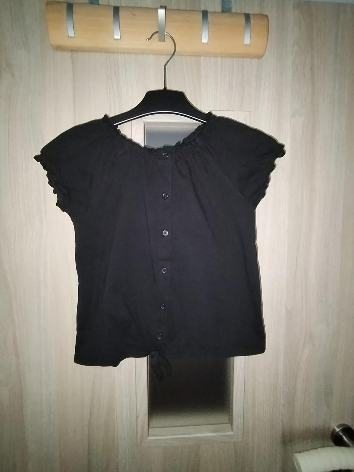 pěkné bez vad, zapínání na knoflíky, dola na zavazání, kolem krku do gumičky. rzkávy také do gumičky