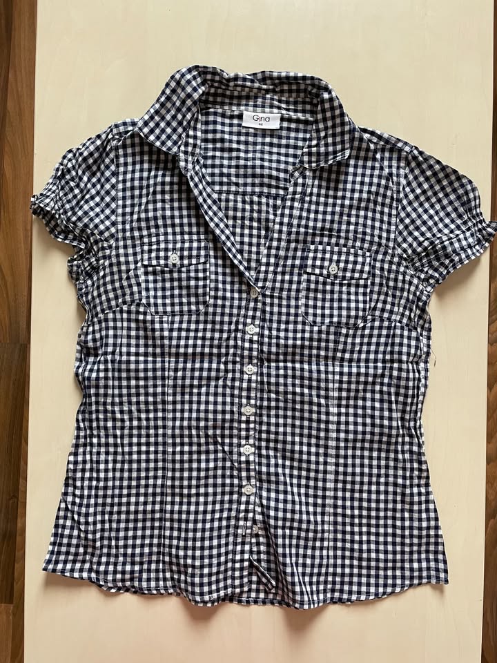 3373. nabízím k prodeji tuto káro halenku, vel 42/tedy XL, ale v prsou bych řekla spíše L, možná i M/L, měřte pláténko nepruží, Gina. Tmavě modré (až do černa) a bílé káro, materiál 100% bavlna. Nošen, bez vad, krásná