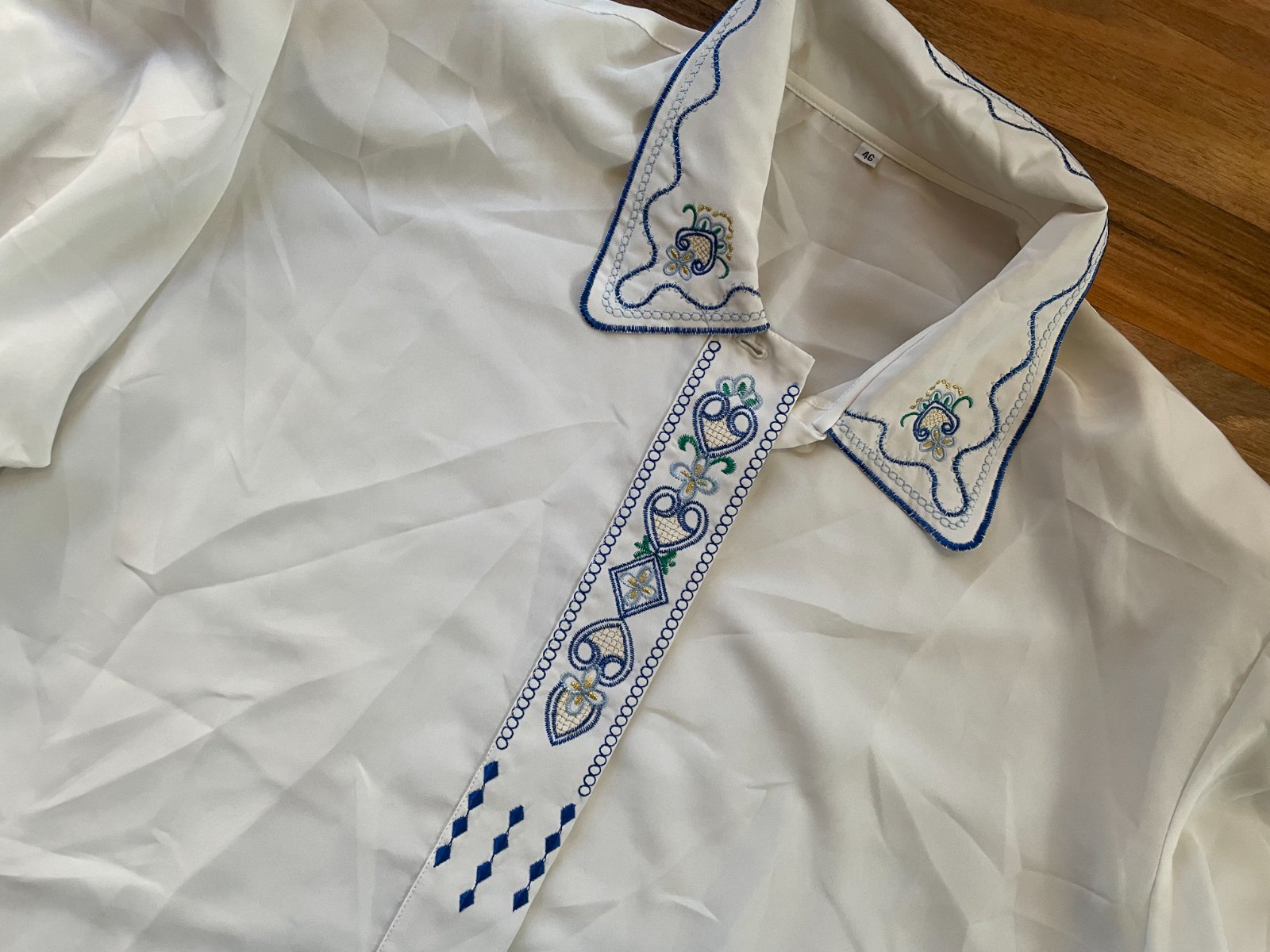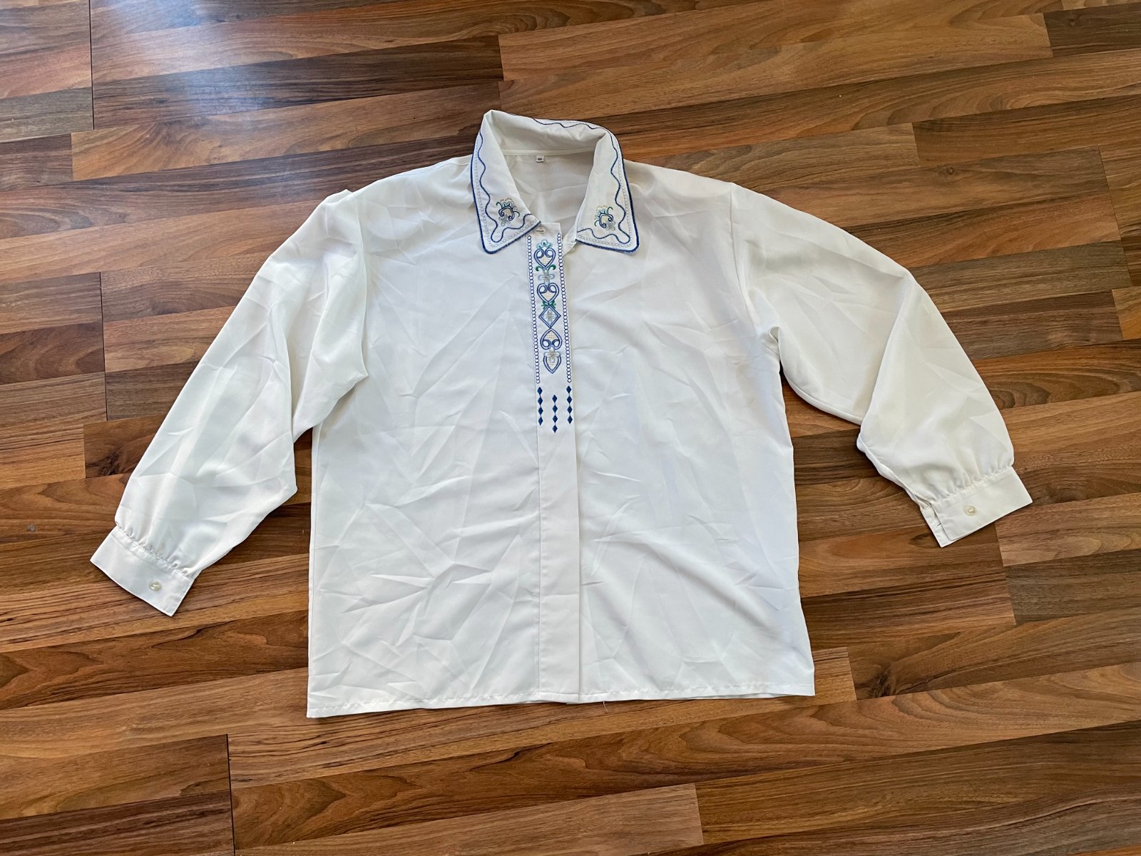 jar. nabízím k prodeji tuto bílou halnku s výšivkou, vel 46 tedy cca XL. Materiál umělý, 100% polyester. V ramenou vycpávky. Nošená, bez vad, krásná