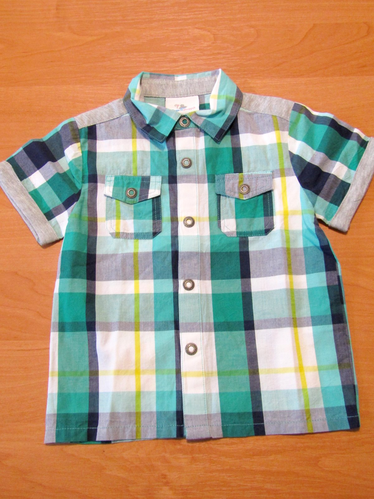 Košile, vel. odhaduji 12-18 měsíců, zelená kostička, lehká, letní, dobrý stav, bez flíčků a žmolíčků