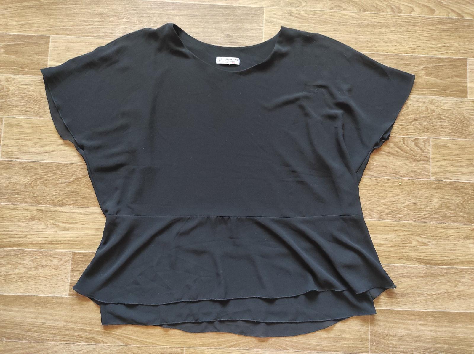 vkusná lehká dámská halenka,v,44-46, pohodlná, zadní díl celý černý a pružný,délka 66cm, původně 800kč ,hezky sedí