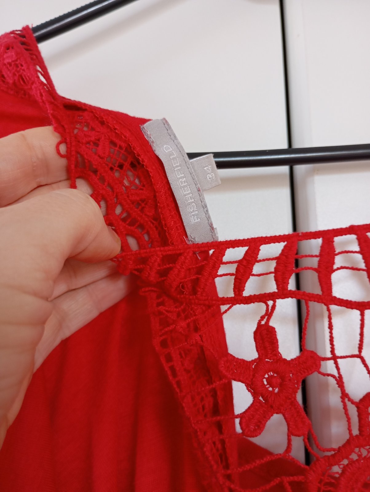Nádherná, pěkný stav bez vad. Značka GATE, velikost udaná 34, ale sedí na 36/38. Barva není tak výrazná, je tmavě sytě červená.