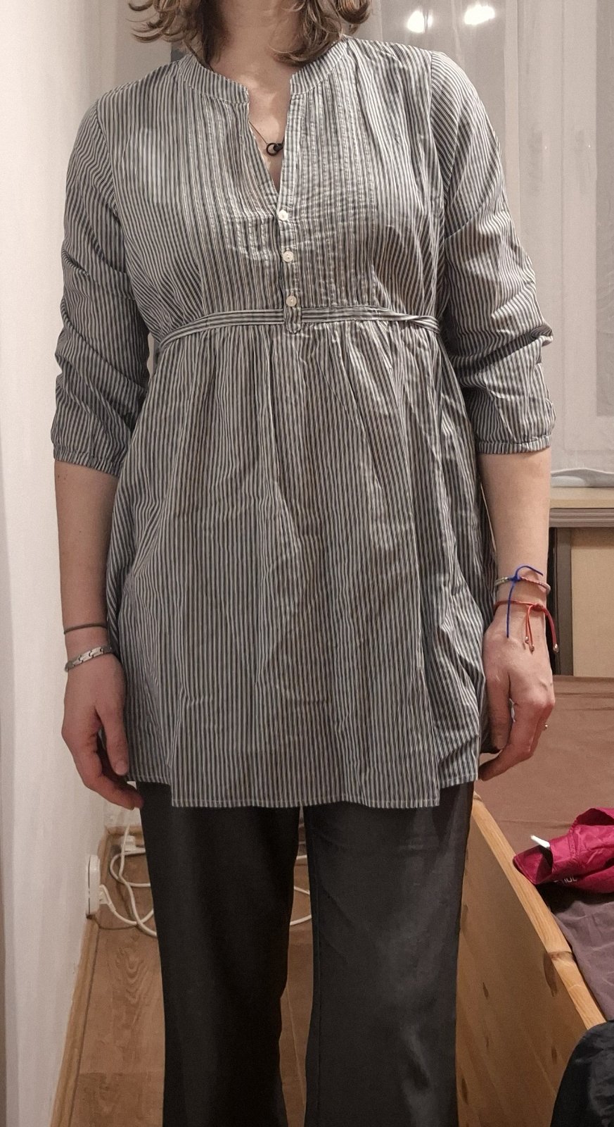 d.63cm,š.2x47cm v klidu,ruk.od krku 72cm,pružná,zapínání na knoflíky,roll up rukávy