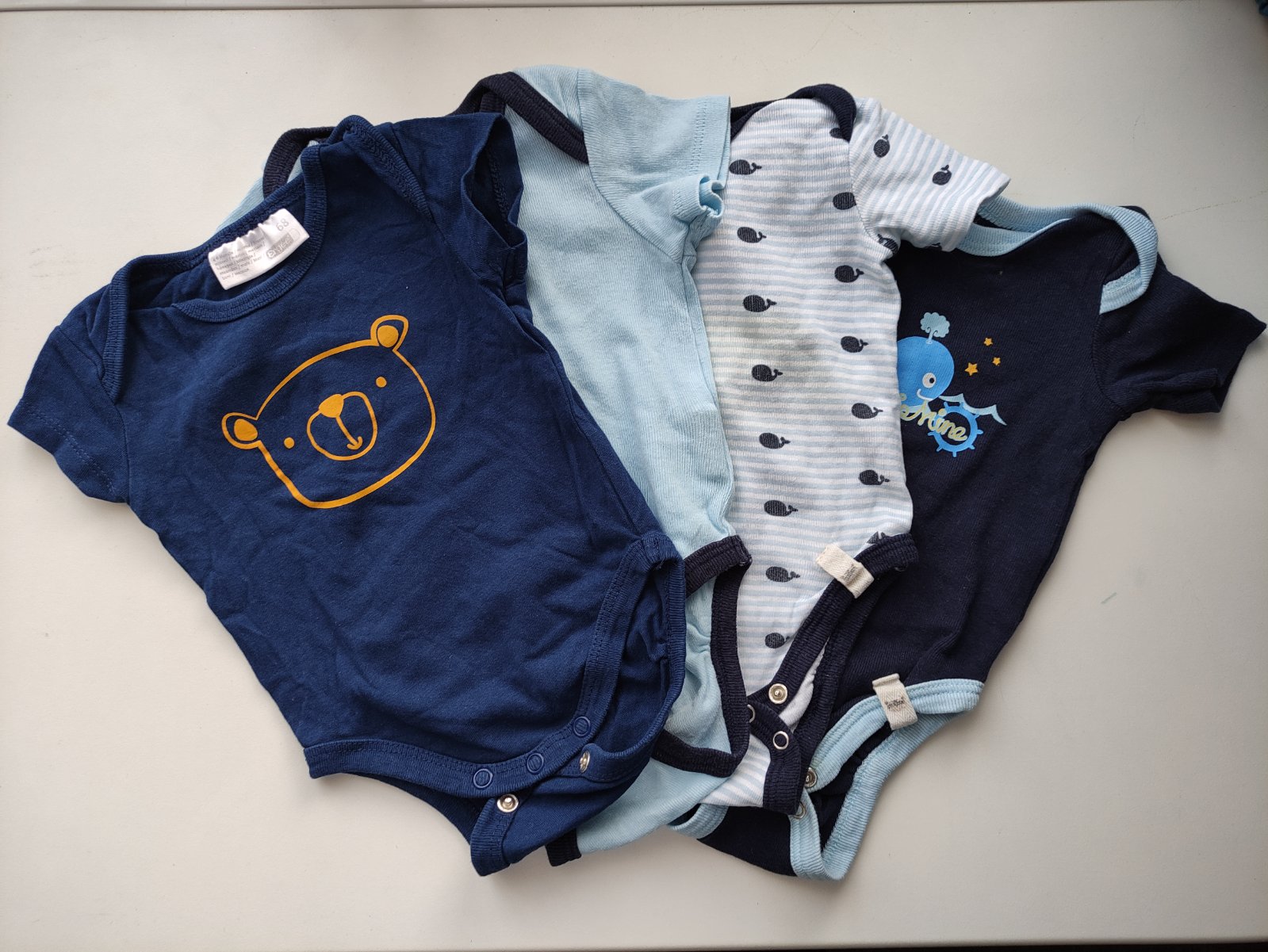 Pěkná bodyčka, málo nošená. Body s medvídkem zn. Ergee, vel. 68, ostatní Koniboo vel. 50/56. 100 Kč za všechny 4.