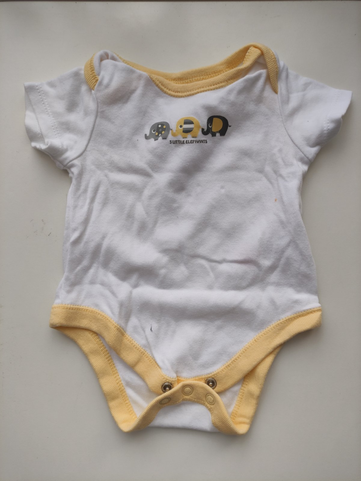 Body je zavinovací, nemusí se tedy miminkům přetahovat přes hlavičku. My už koupili pozdě, takže obléknutá jen k lékaři. Cena za obě.