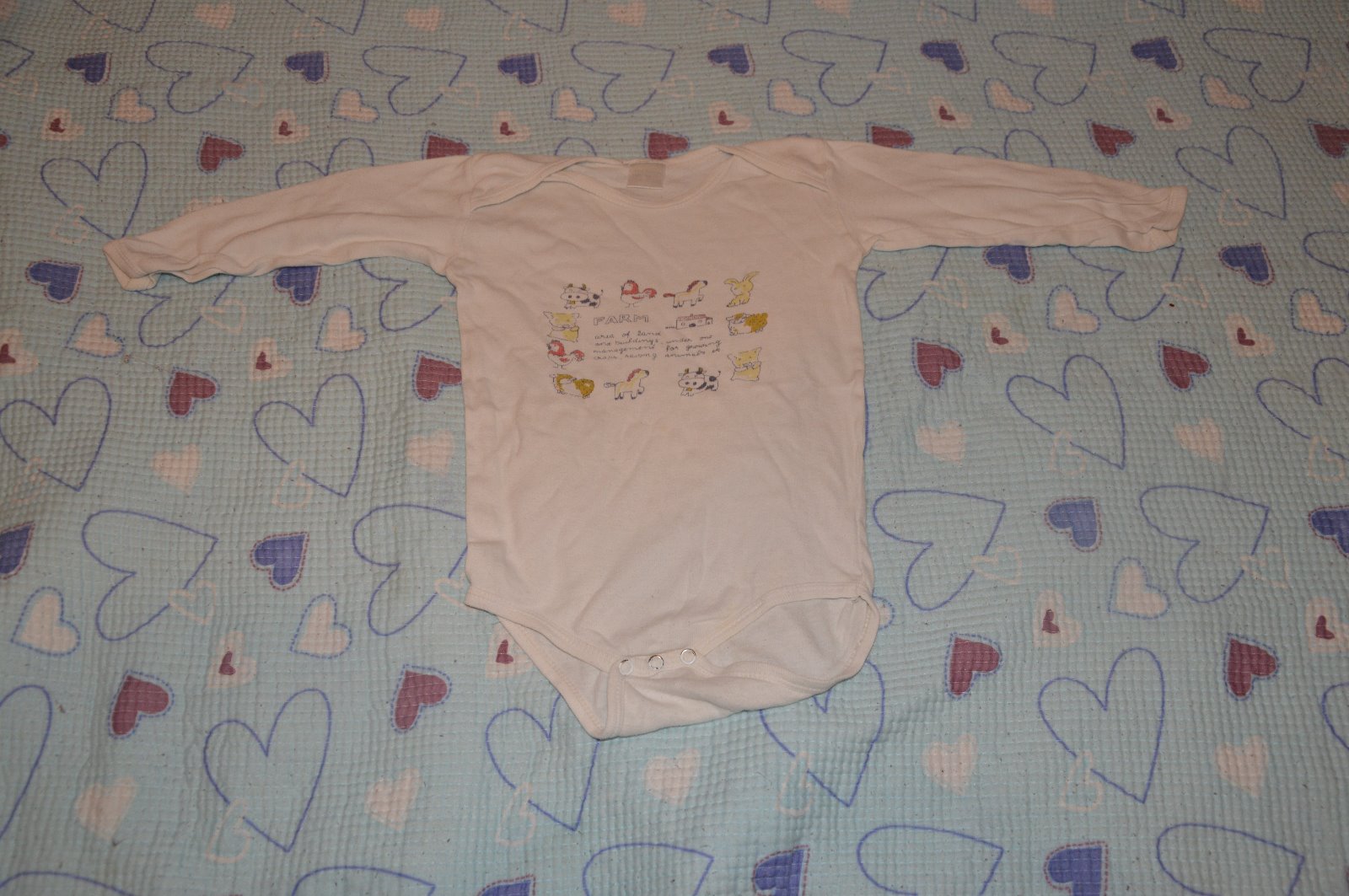 100% bavlna, délka 45cm - uvedena vel. 86, ale vytáhlo se, je větší, poč. žmolíky, dole pár zašitých oček, jinak fajn.