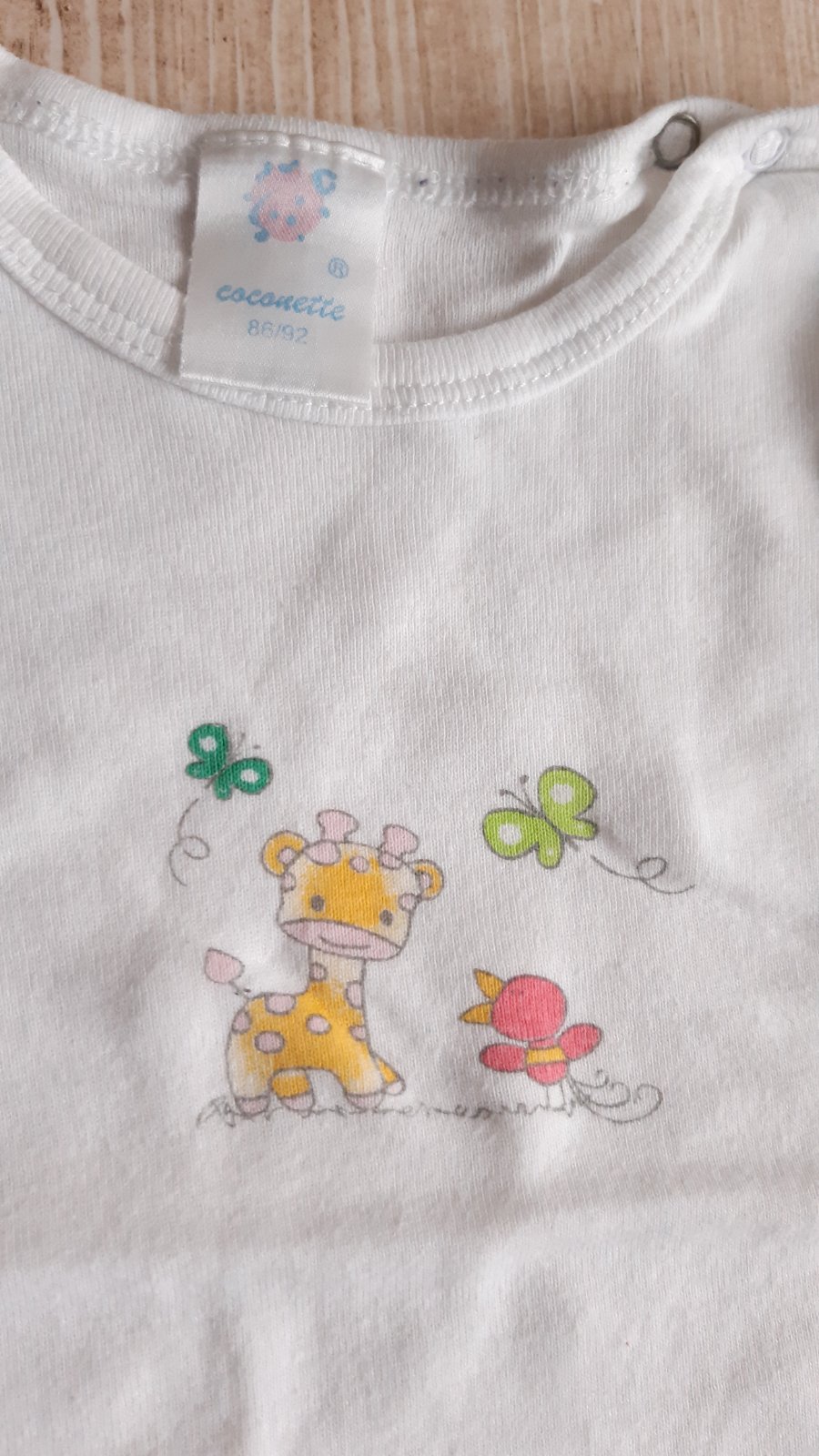 Bílé body s obrázkem žirafky, námi kupované nové a nošeno 2 syny málo.