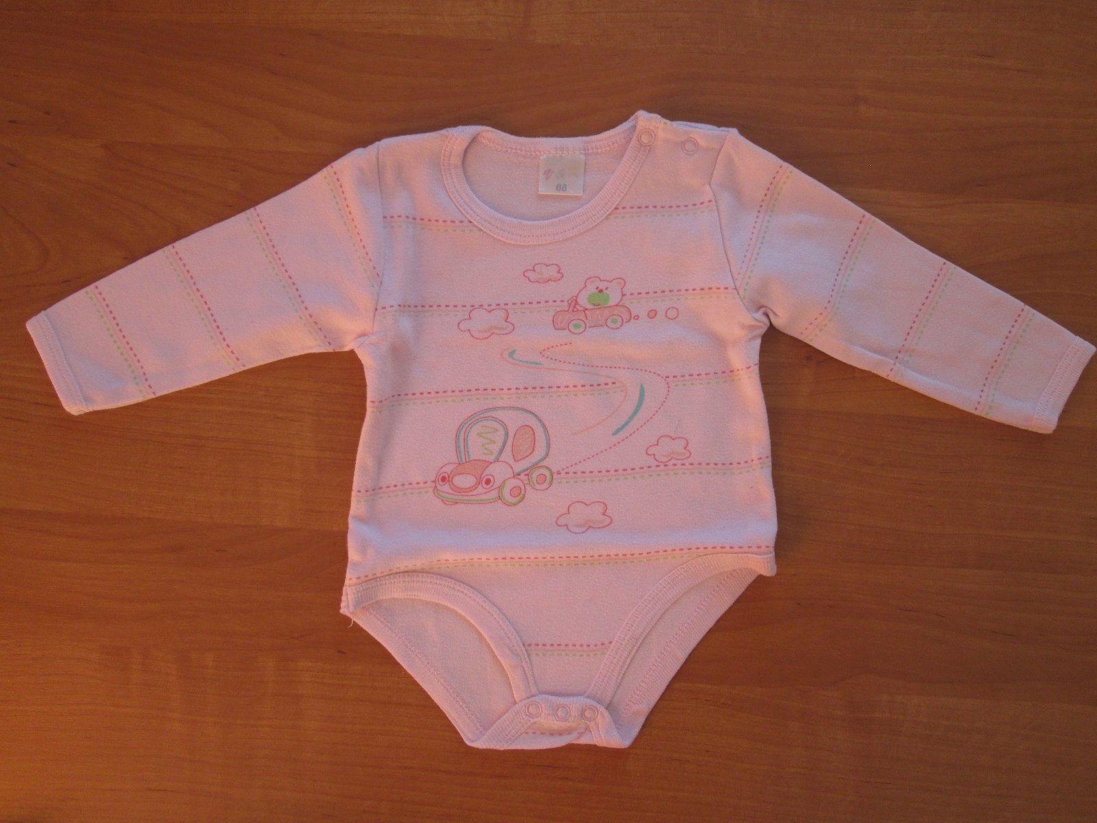 Body s dlouhým rukávem, růžové barvy, velikost 62/68.(psána velikost 68), odpovídá menší-62.