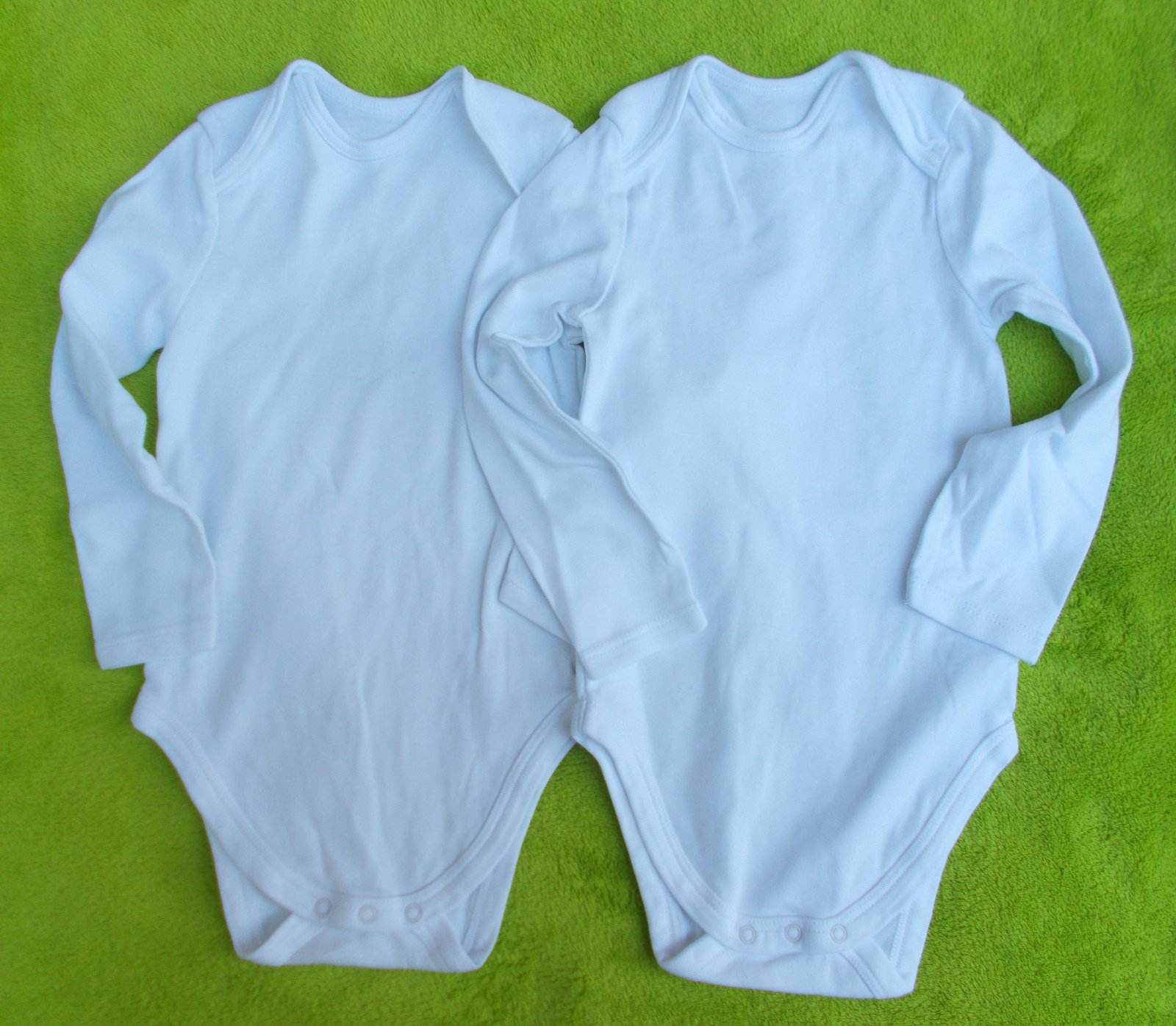 Prodám dvě pěkná unisex bílá body v super stavu, jen přepraná v ruce. Dlouhý rukáv, přebal na druky. Barva je sněhobílá, foto se mi nepovedlo ... Materiál - 100 % bavlna.