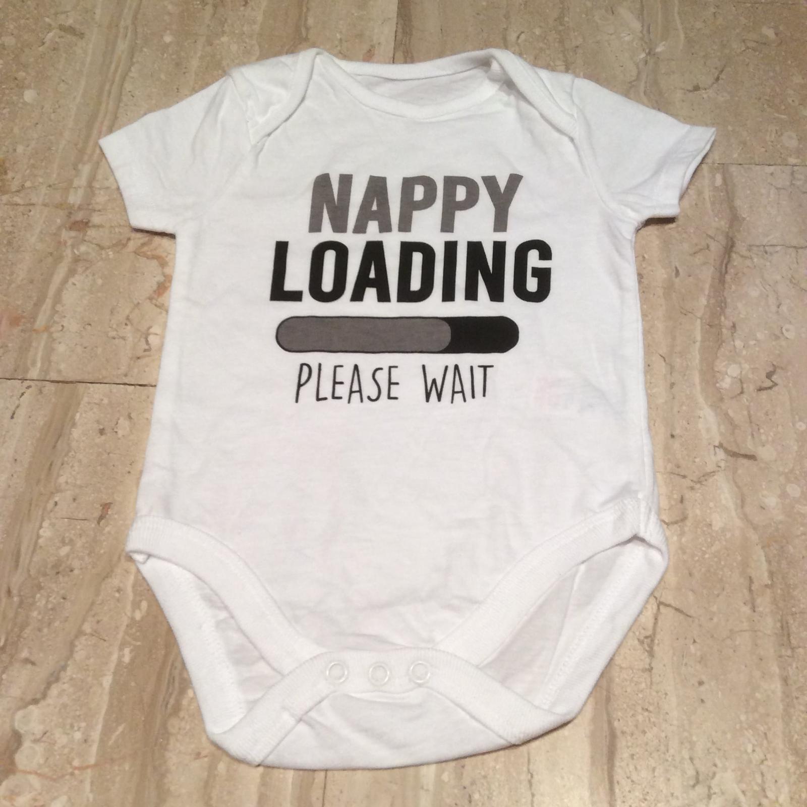 vel. 74 (6-9 měs.) - ,,NOVÉ" (pouze vyprané) vtipné body s nápisem - ,,plínka se plní - prosím, čekejte"