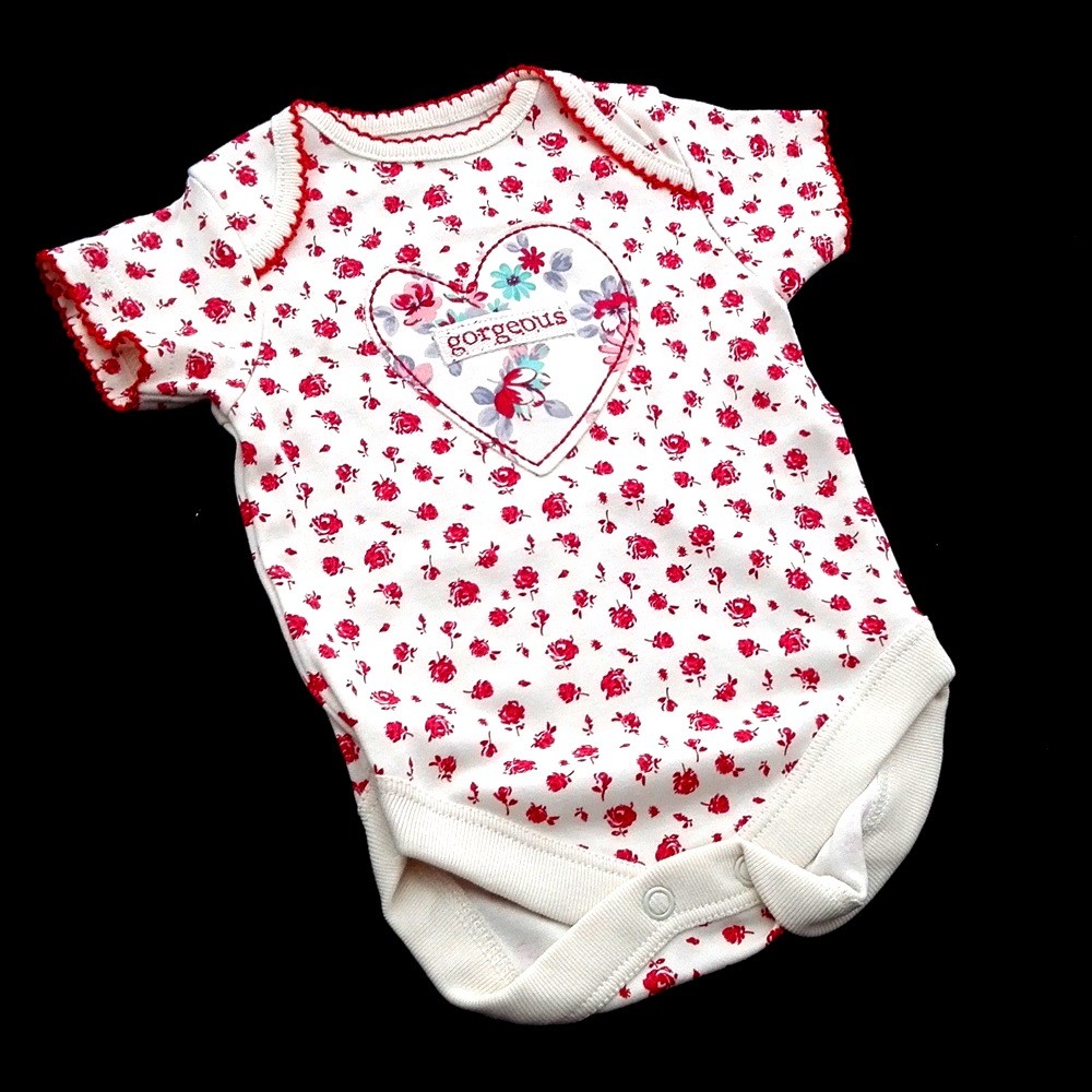 Kojenecké body s krátkým rukávem zn. Next barva krémová/červená