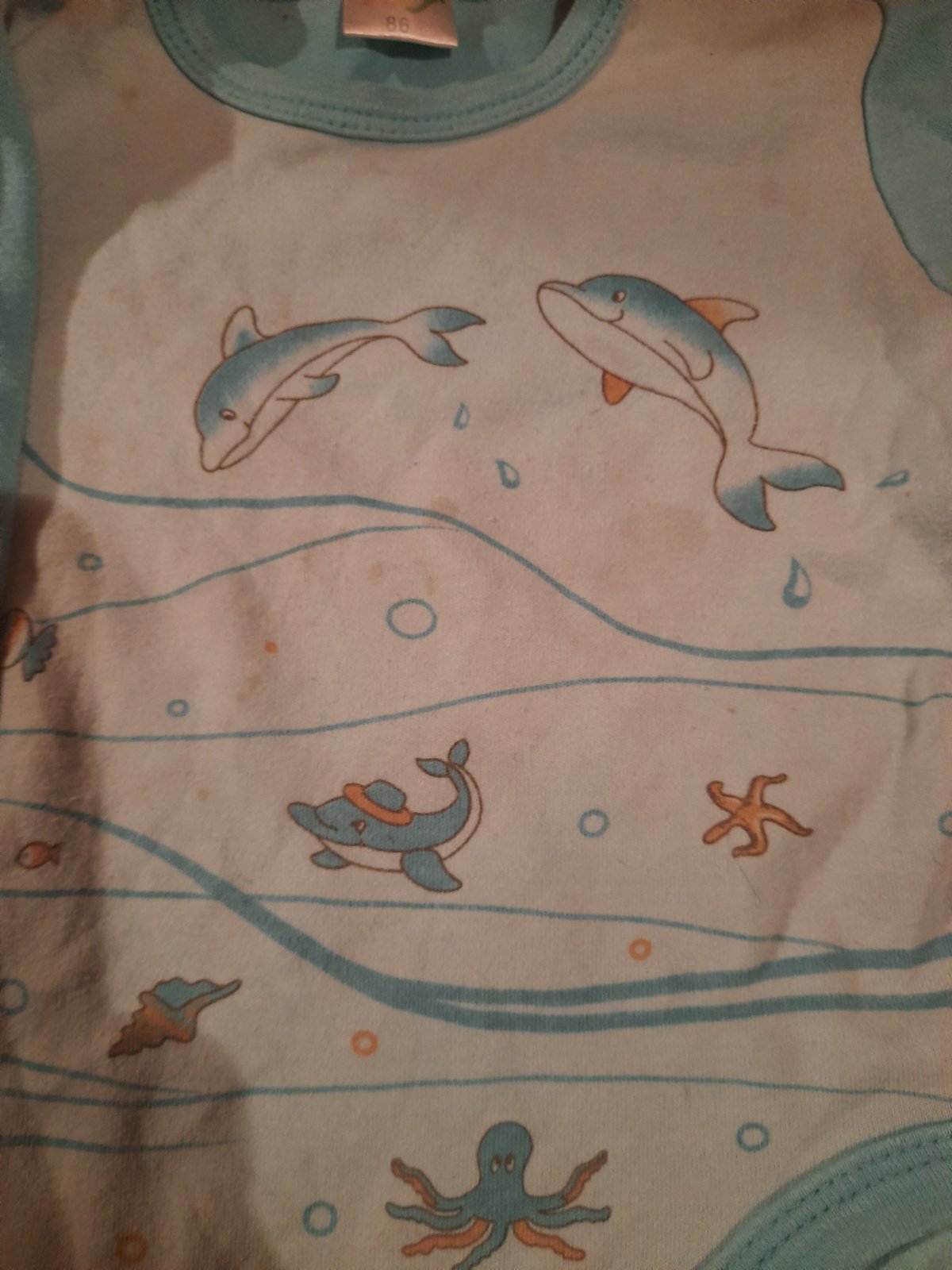 Prodám body v zachovalém stavu, vše velikost: 74 - 80, značka hnědé body: H&M, s králíčkem: Looney Tunes, s rybičkami: K&Y, složení všech 3 body: 100 % bavlna. Obě modré mají flíčky, viz foto, vanish nebo ekover třeba výměře, cena tomu přizpůsobena, hnědé body v pořádku. Cena za hnědé body 35 Kč, za králíčkové: 6 Kč, za rybičkové: 6 Kč. Pokud vezmete jako celek: 35 Kč + poštovné. Krabice č. 39.