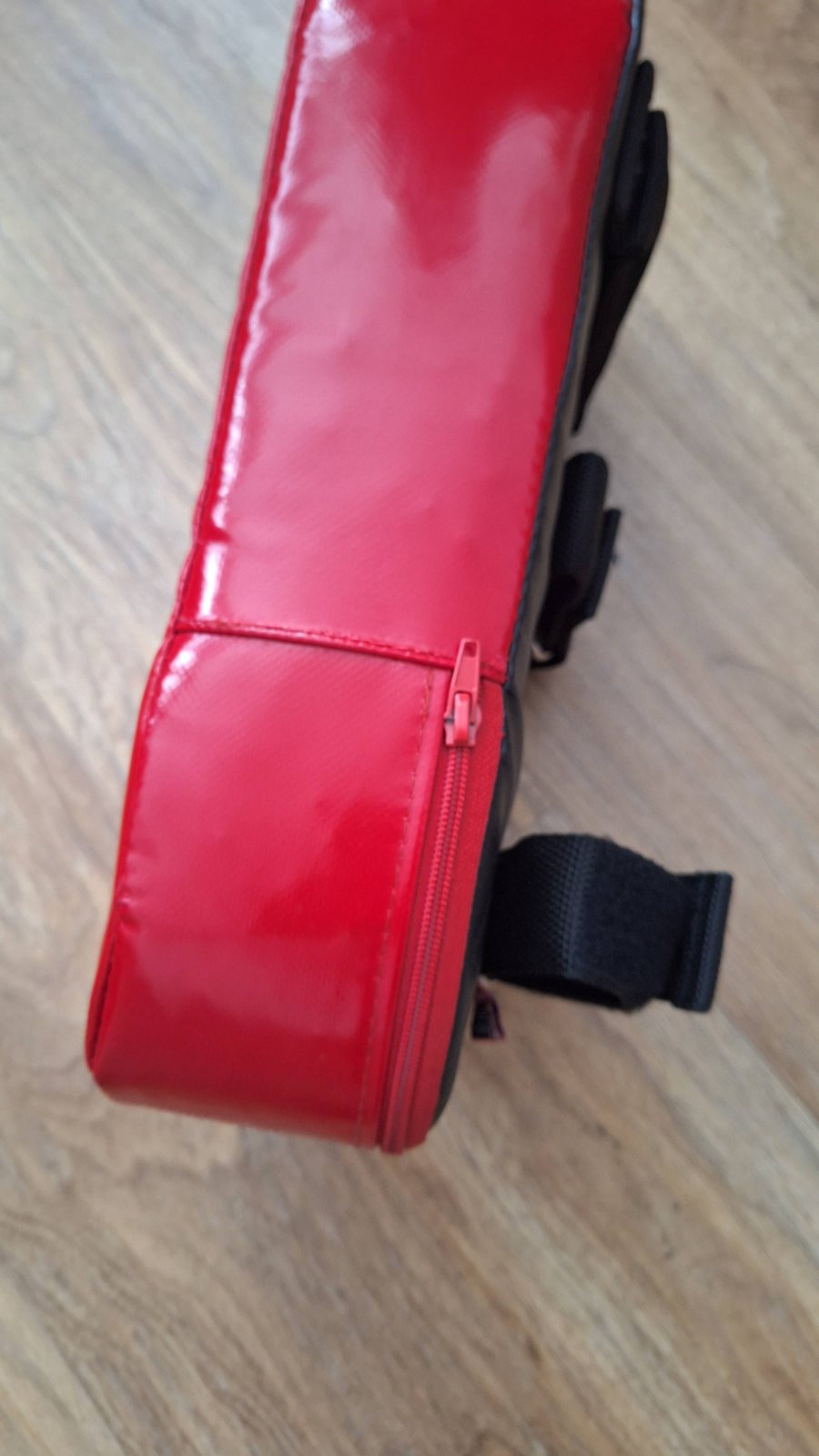 Vybaven dvěma popruhy ke stáhnutí na předloktí.