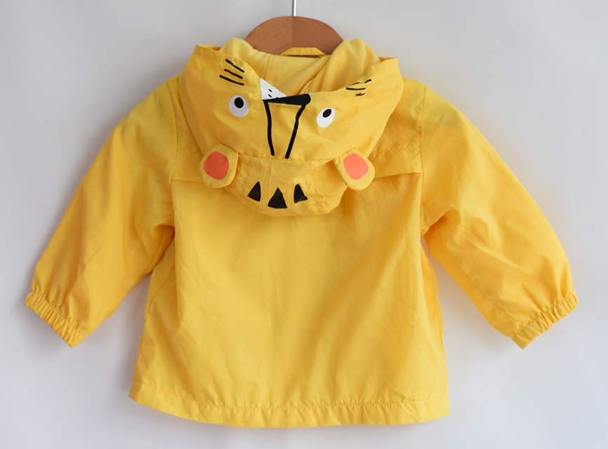 Žlutá, tenká šusťáková bunda. Podšitá bavlnou.