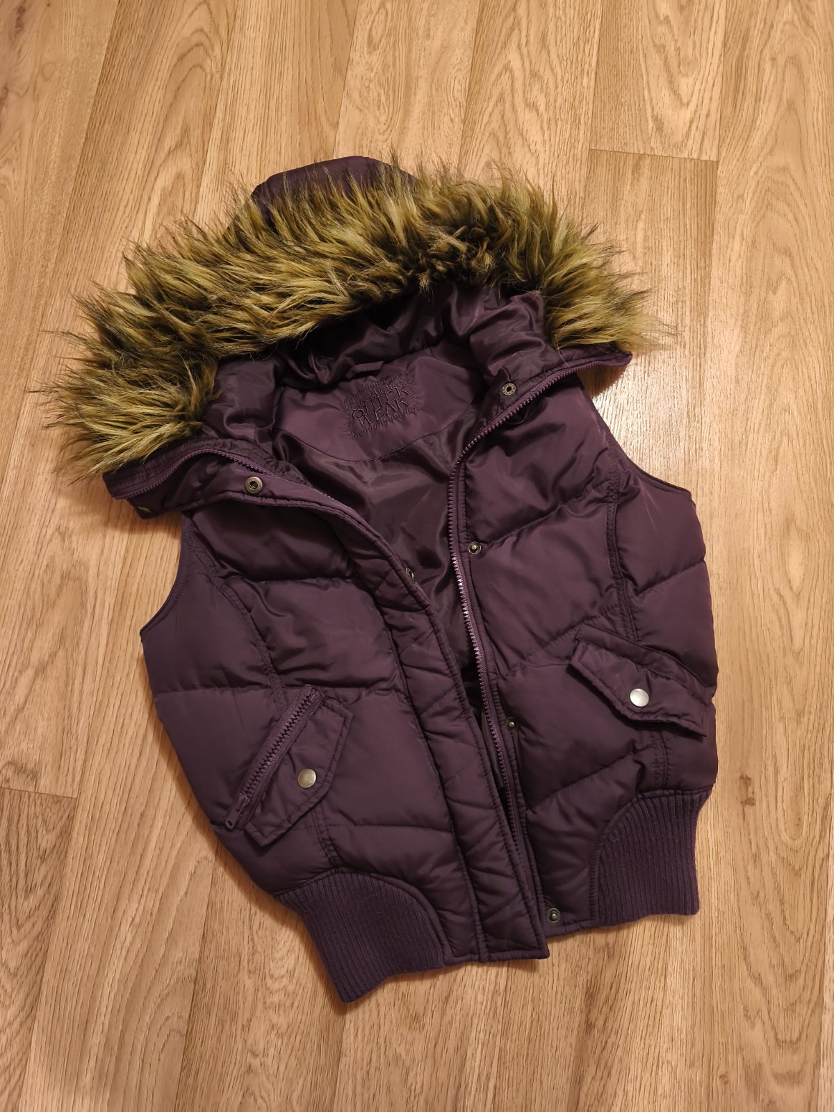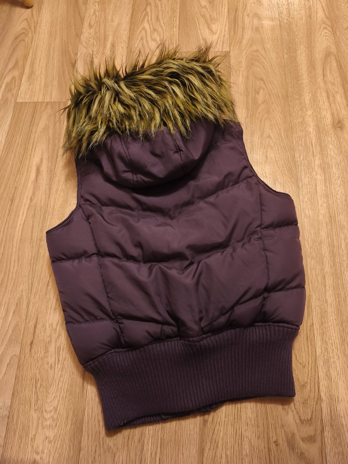 Krásná kratší vesta vel.M, kupovaná v C&A, nošená při XS-M nebo 164, kožíšek krásný huňatý. Bez vad, snad jen žmolíky na nápletech.