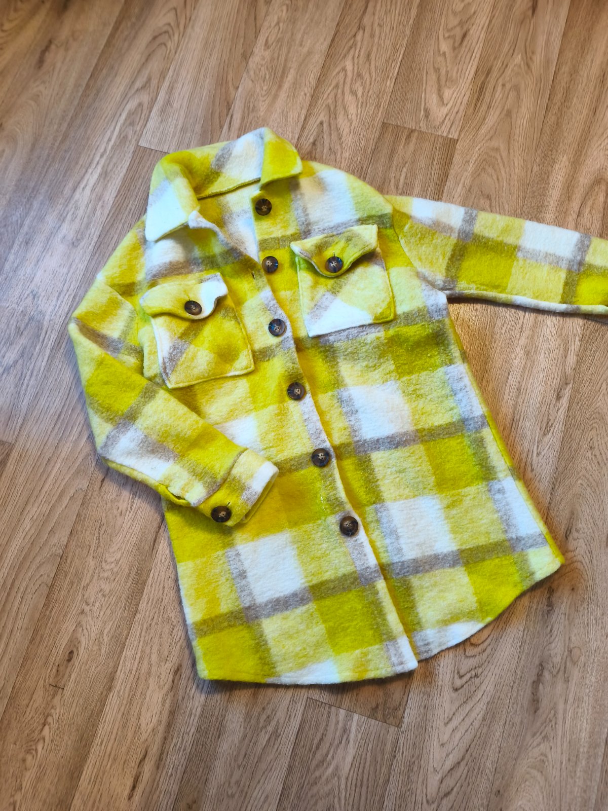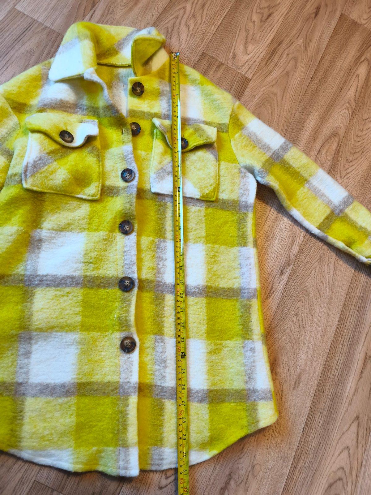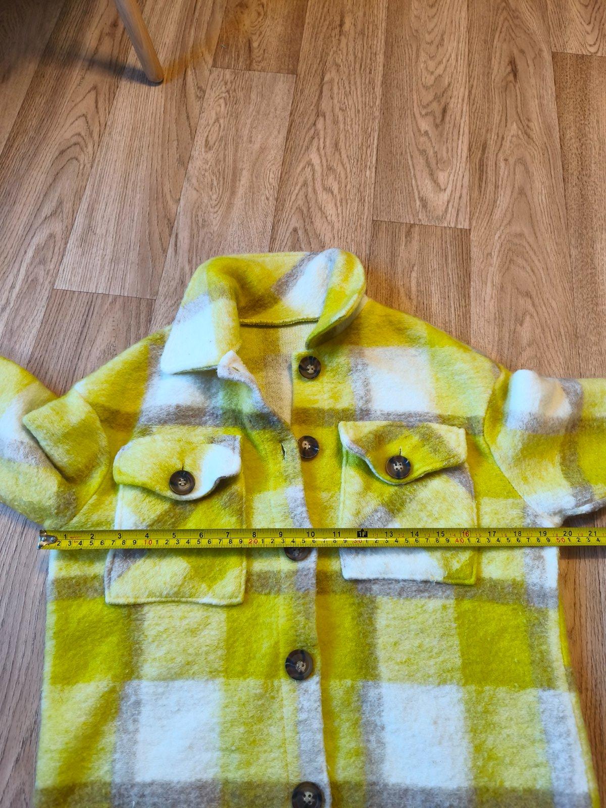 Párkrát vzatá košilová bunda Erika fashion uni vel XS-M, žmolky zvenku i zevnitř, tento materiál se takhle chová. Barva sluníčkově žlutá, fotky zkreslují, není ani takhle křiklavý, ale hezký žlutý. Mohu poslat i katalogové fotky na modelce.