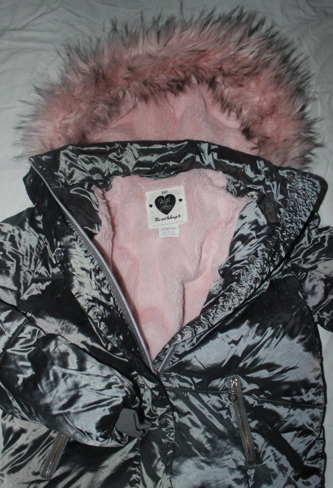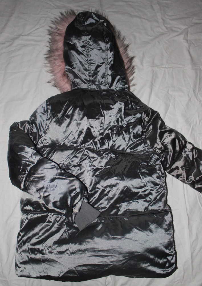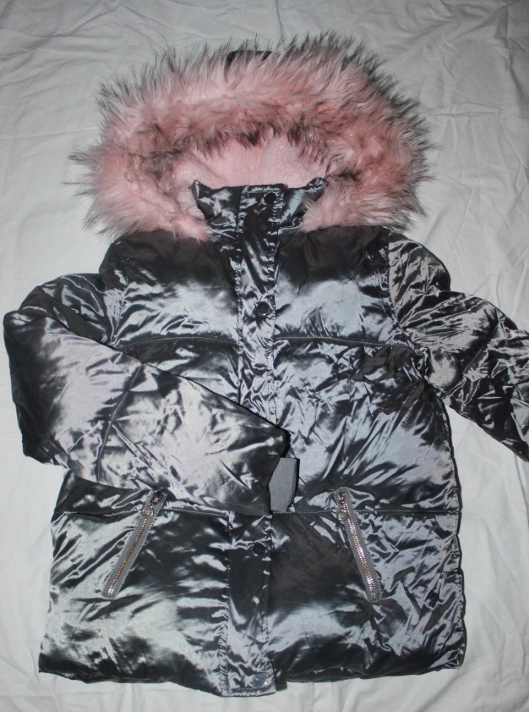 Po naší Ami, oblíbená, nošená, ale ve výborném stavu (pouze na úpletech rukávů malinko žmolík), prošívaná, měkkoučká a velmi teplá-kromě klasického zateplení má uvnitř růžový kožíšek (kromě rukávů) kožíšek v kapuci, která je napevno a lemovaná růžovou delší kožešinou. Zapínání na uzávěr+cvoky, 2 boční kapsy na uzávěr