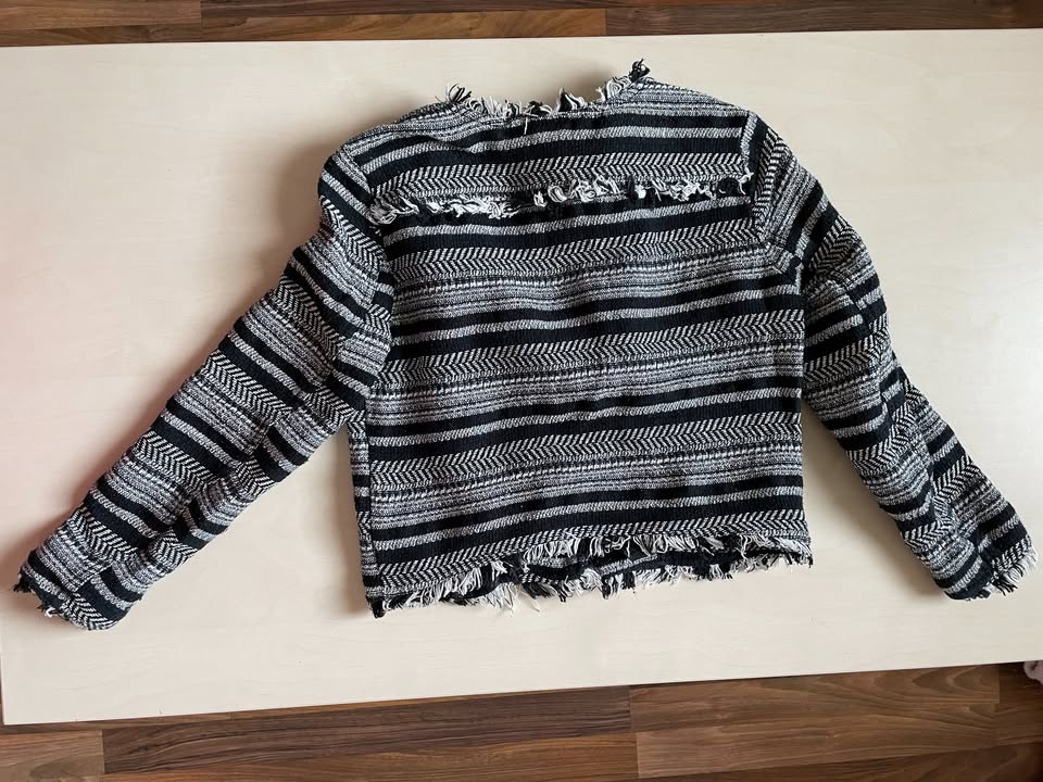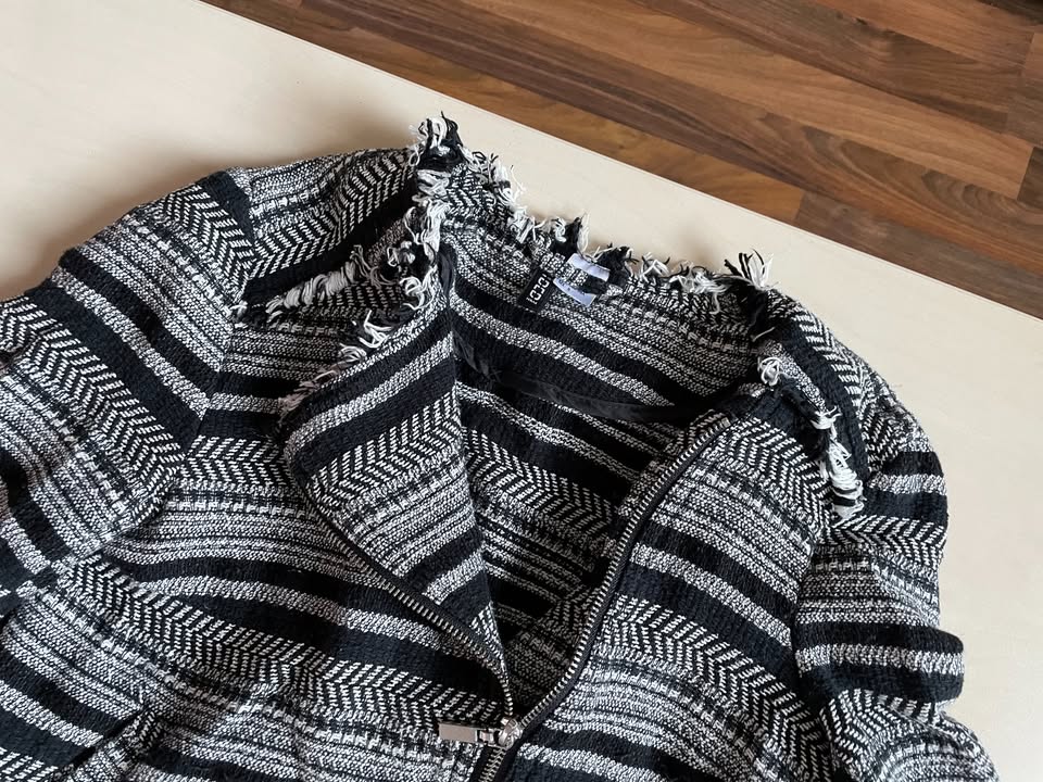 3515. nabízím k prodeji tento svetr na zip/ krátká bunda, vel 38/ tedy M, v prsou ale menší cca S - S/M, HM, divided. Materiál jako příze 92% bavlna, 8% elasten, kapsy silonové. K zapínání na šikmý zip. Kolem lemů třepený. Nošen, bez vad jen zblízka chloupek, dáno tou přízí, krásný