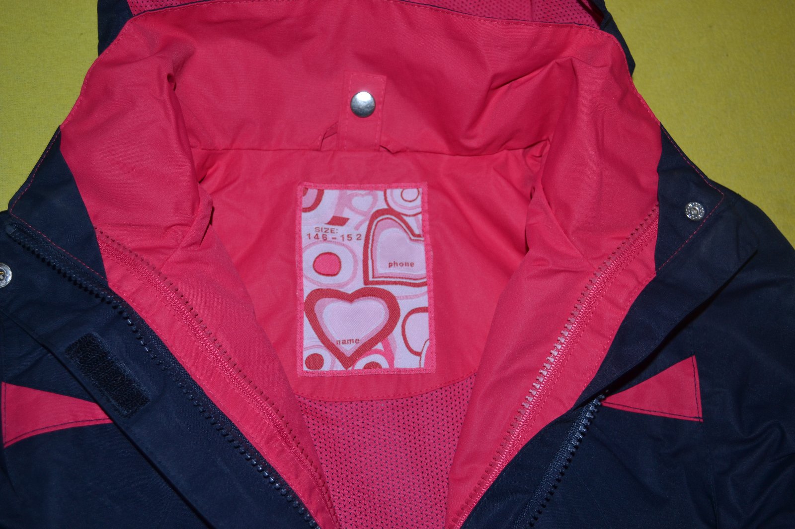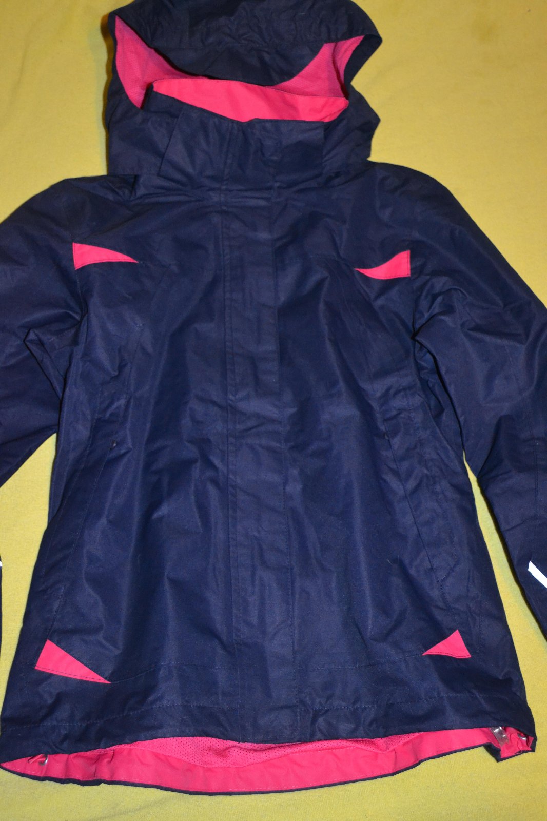 kvalitní vkusná značková dívčí bunda Tchibo,v. 146-152, kapuca,kapsy na zipy,kapsička i uvnitř,reflexní prvky,rukávy na stažení na suchý zip,do bundy je možné připnout i mikinu,ta není součástí,bunda je pohodlná,praktická,délka 57/61,rukáv od krku 64cm,výborný střih