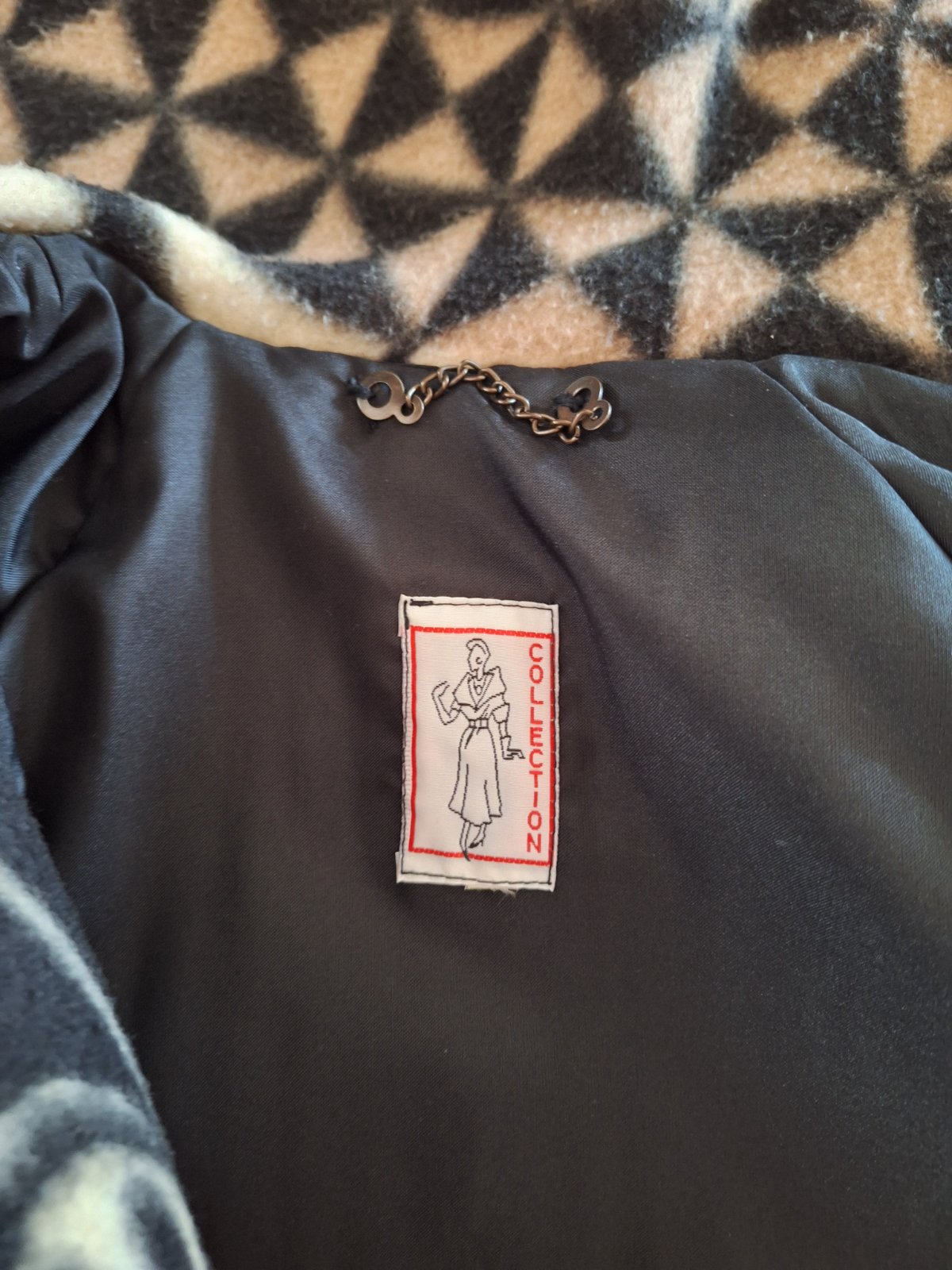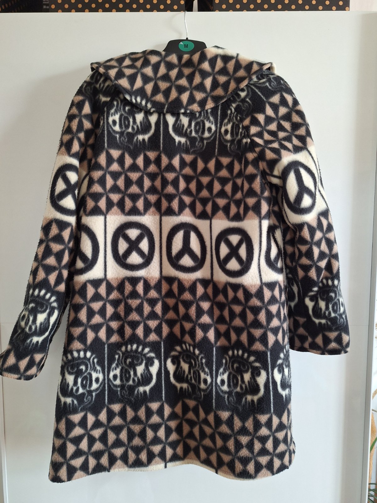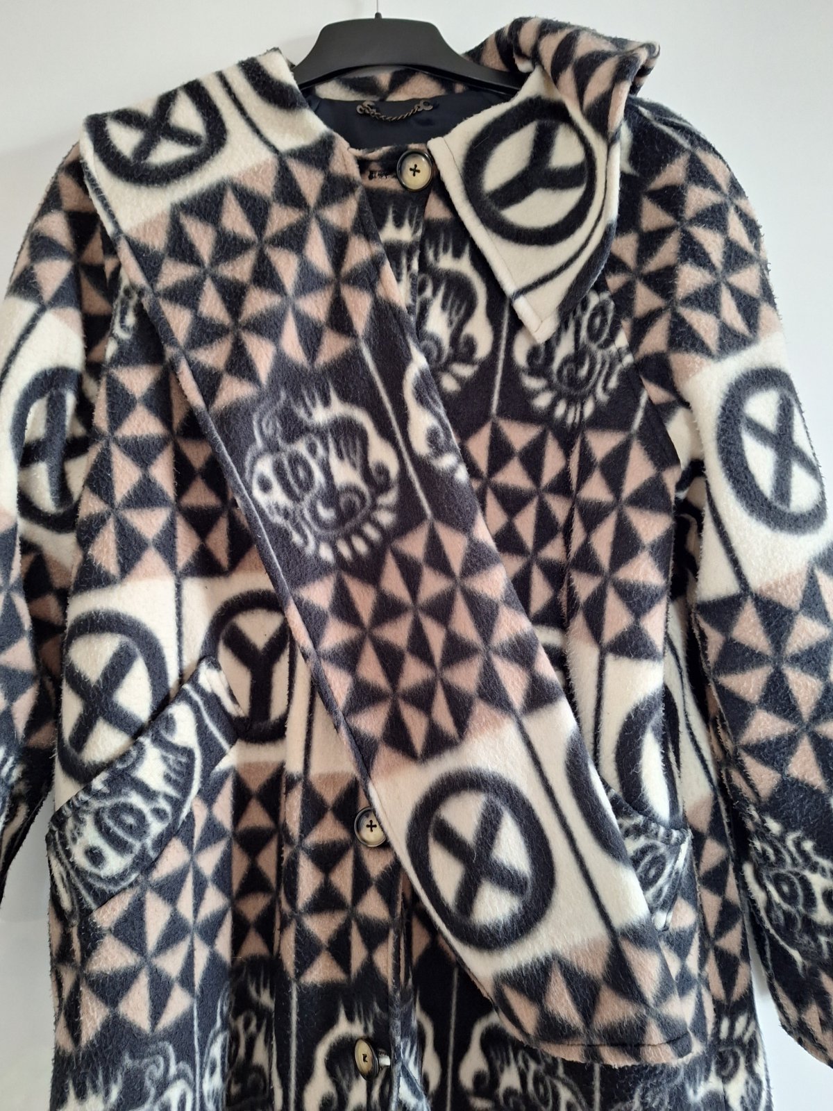 Dámský zimní vlněný kabát, límec je zároveň šála.