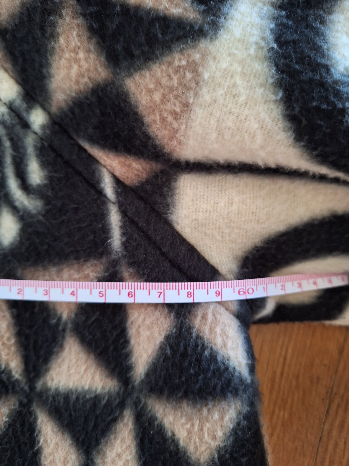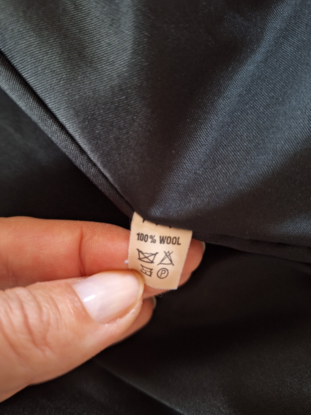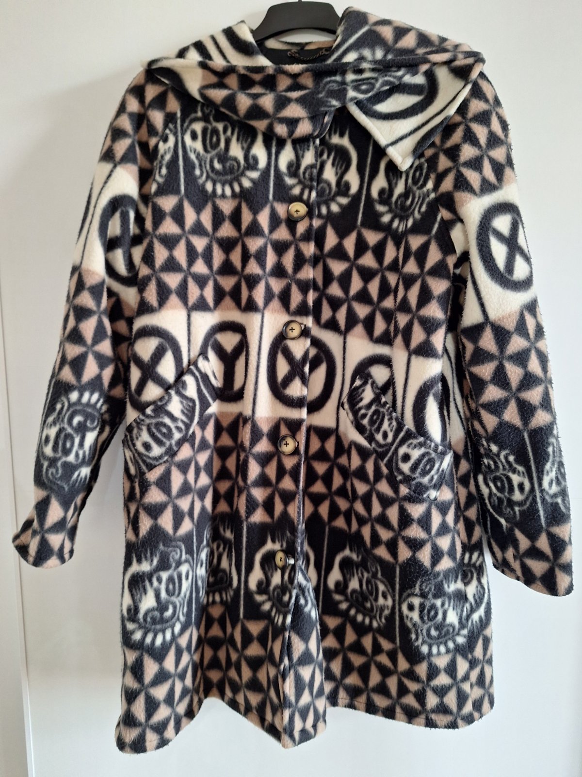 Dámský zimní vlněný kabát, límec je zároveň šála.