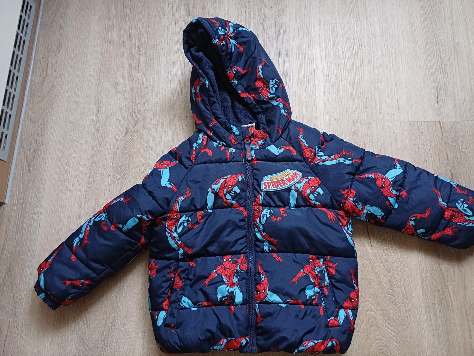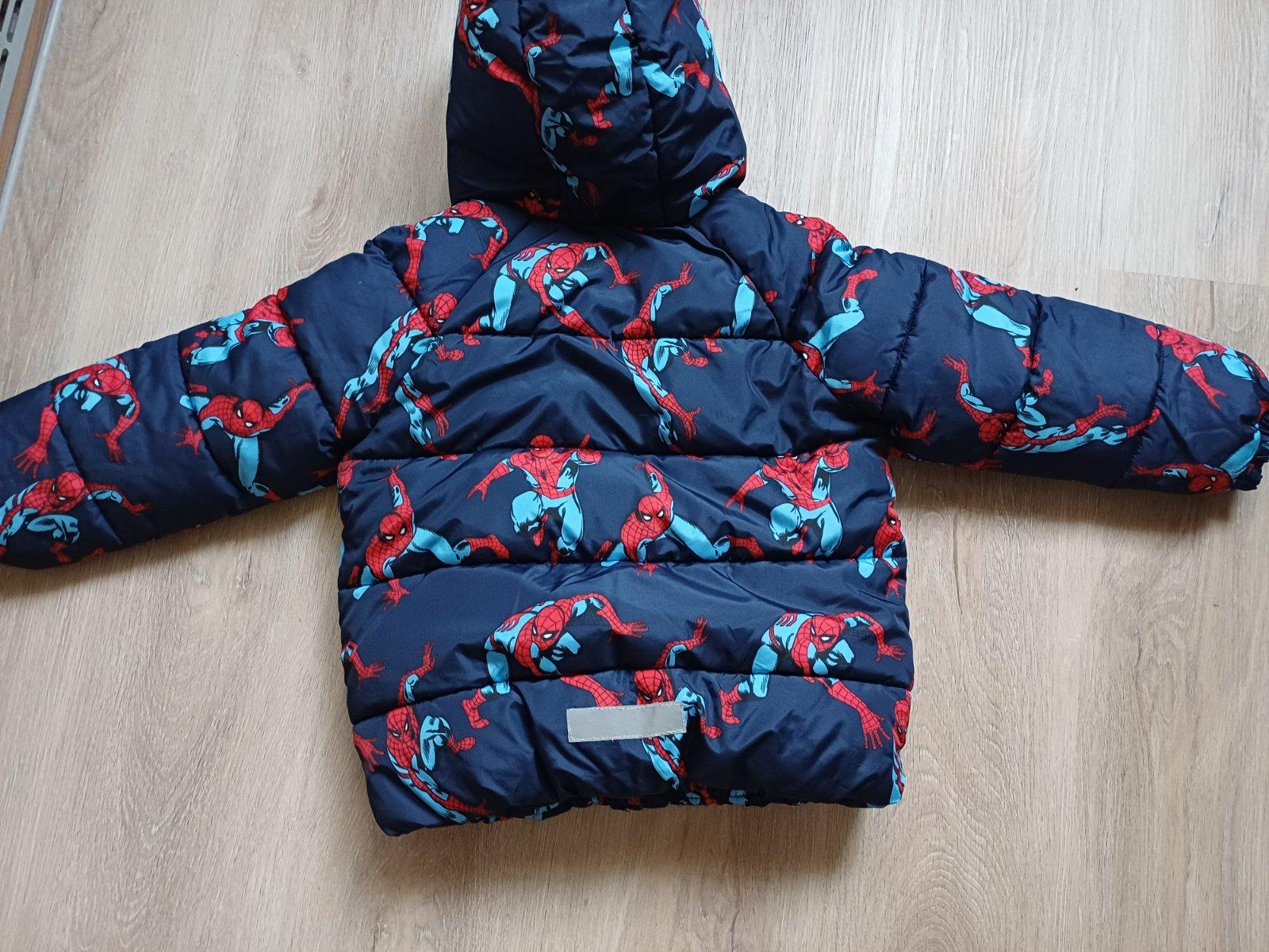 Zimní bunda,velikost 116, značka F&F (Spiderman), uvnitř flauš,kapuce napevno, teplá. Délka 46cm, šířka v podpaží 40cm, rukáv od krku 47cm.