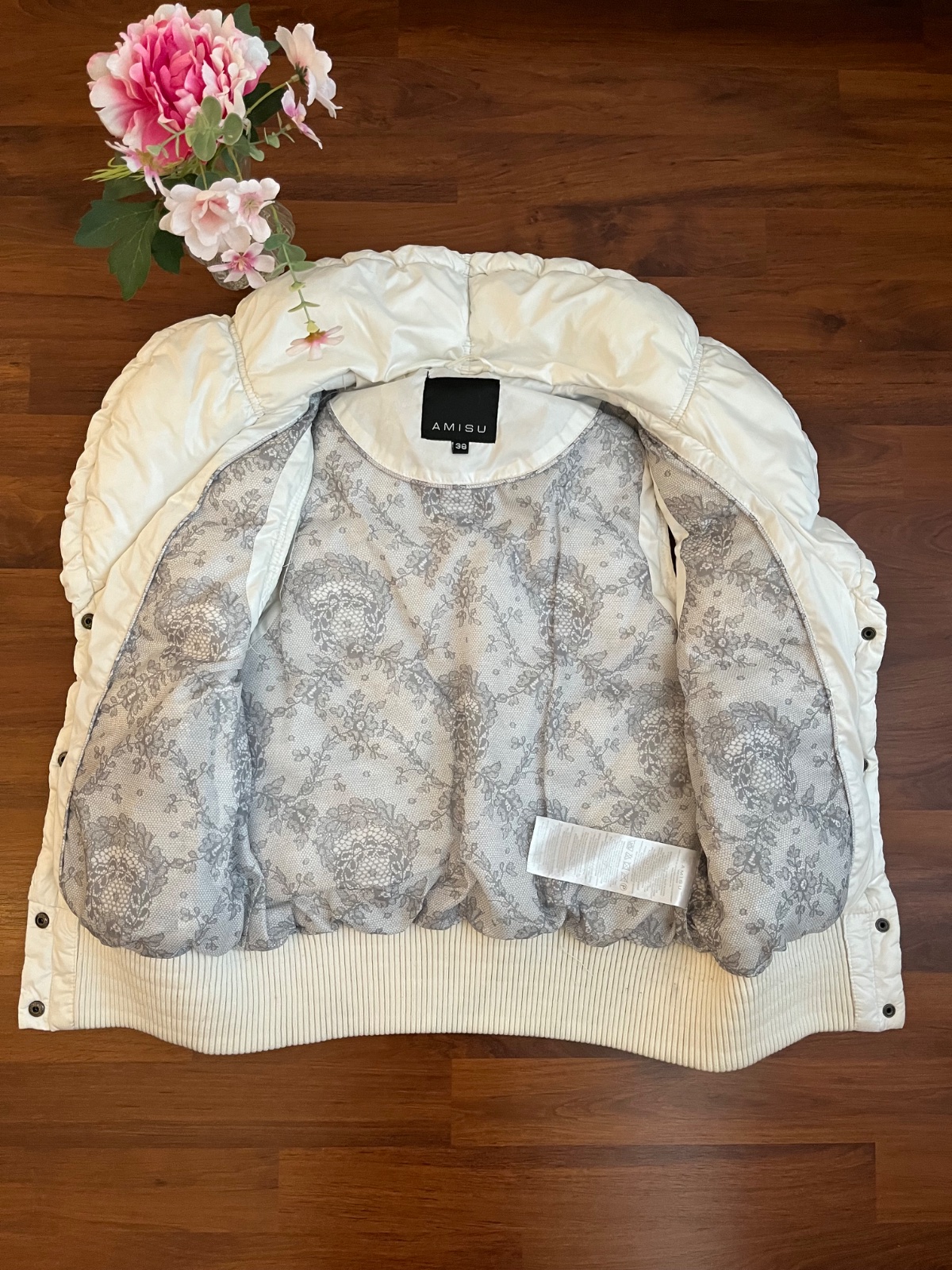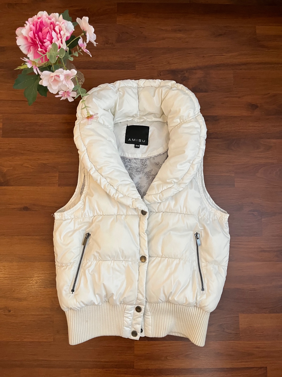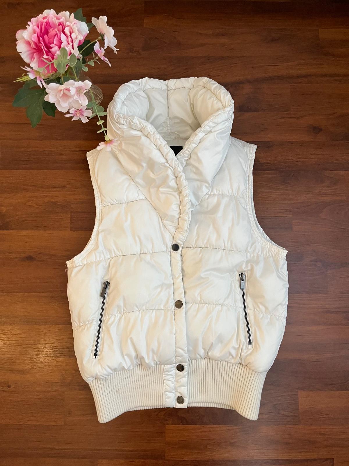 Bílá vesta zn. Amisu vel.38. kapsy na zip, zapínání na patentky.