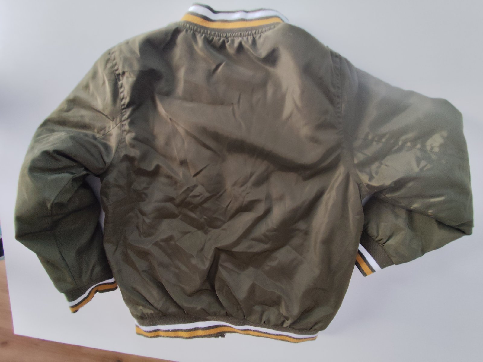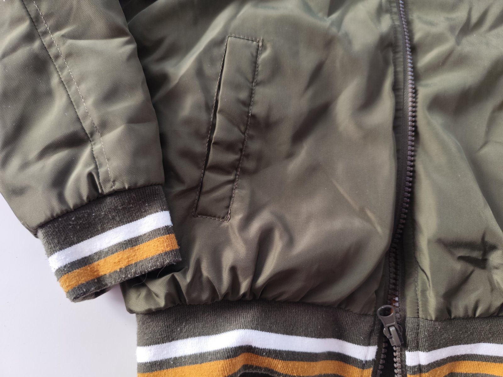 Lehká přechodová bunda. Výborný stav (nepatrná skvrna u krku) Celková délka od ramene je 52 cm. Délka rukávu od krku je 55 cm. Šířka přes hrudník je 42 cm. (31.3.2022)