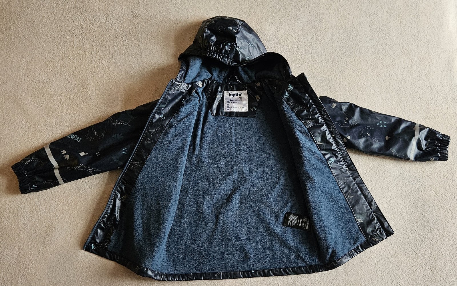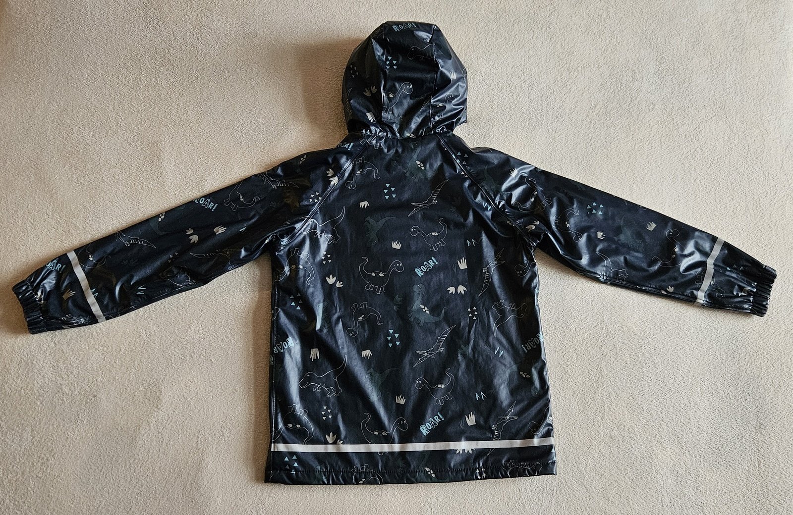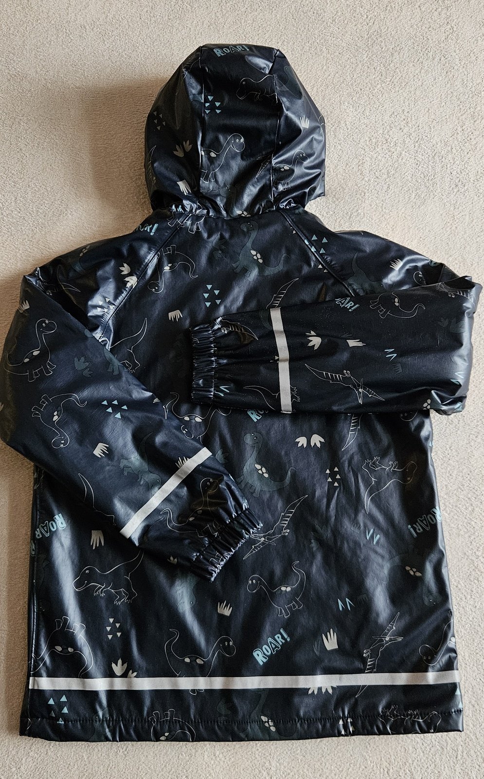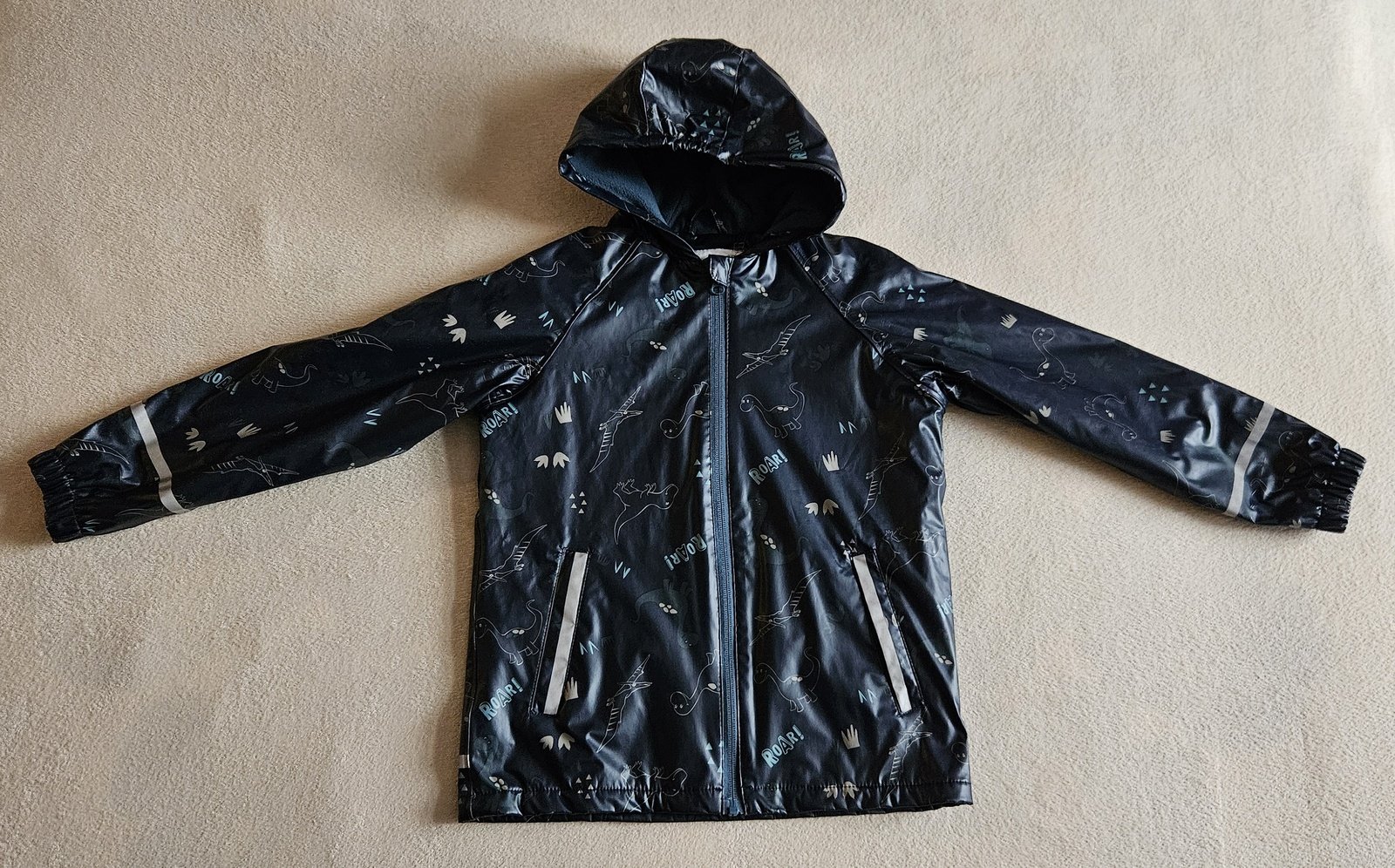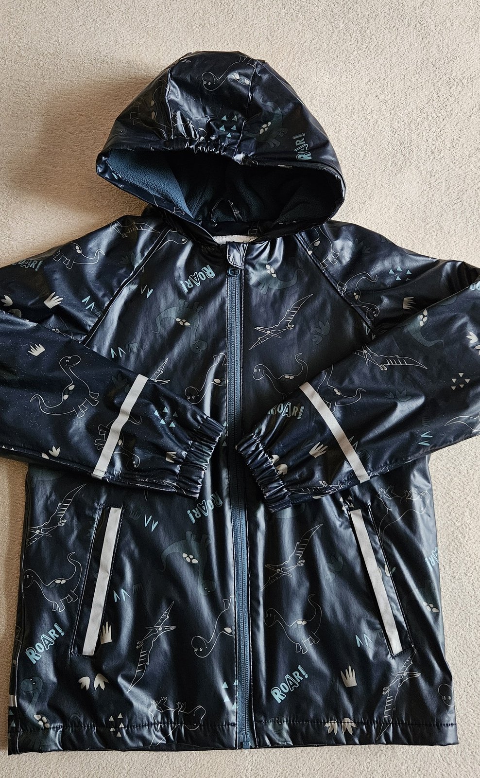 V pěkném stavu prodám chlapeckou nepromokavou bundičku s dinosaury podšitou hřejivým fleesem.