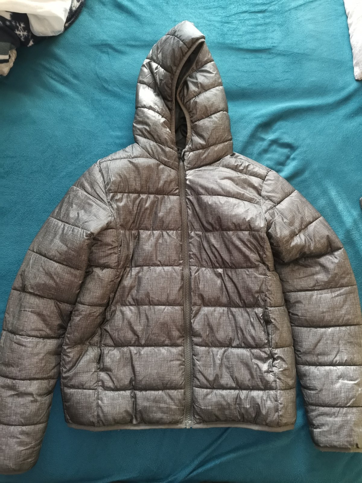 Prodám nošenou zimní bundu. Moc hezká, malá vada, zašitá dírka, viz foto. Délka 67 Cm, rukáv 68 Cm. značka Crocodilino.