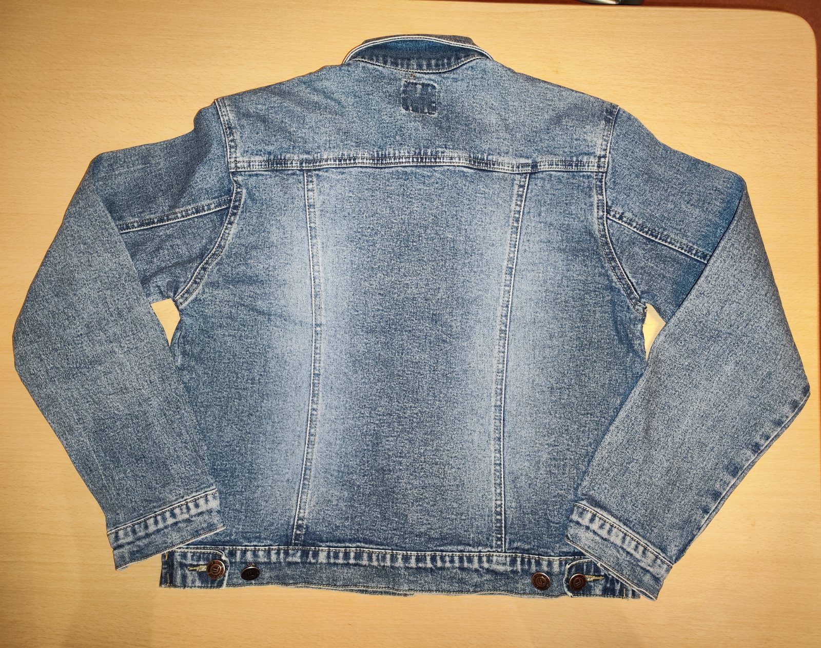 Prodám modrou riflovou bundu Forest uvedená velikost S, ale spíše XS, rozměry – délka od ramen 47, 5 cm; šířka v podpaží 44, 5 cm; délka samotného rukávu 51 cm; délka rukávu od krku 64, 5 cm. 2 kapsičky na prsou uzavíratelné na knoflík. Materiál 100% bavlna. Cena 150 Kč, v Brně možné osobní předání.