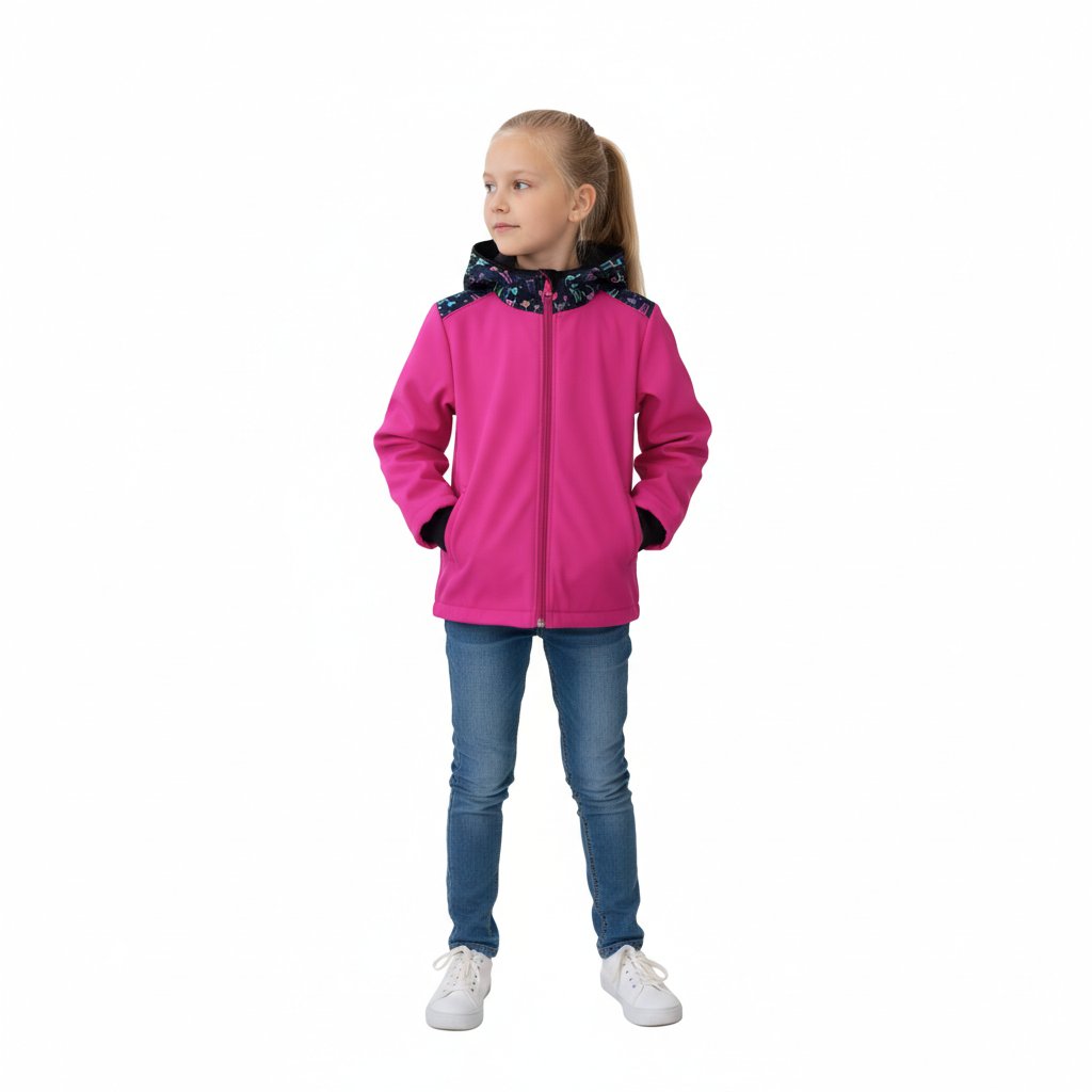 Bunda je navržena tak, aby přirozeně doplňovala další softshellové oblečení (kalhoty, vesty,....) v dětském šatníku.