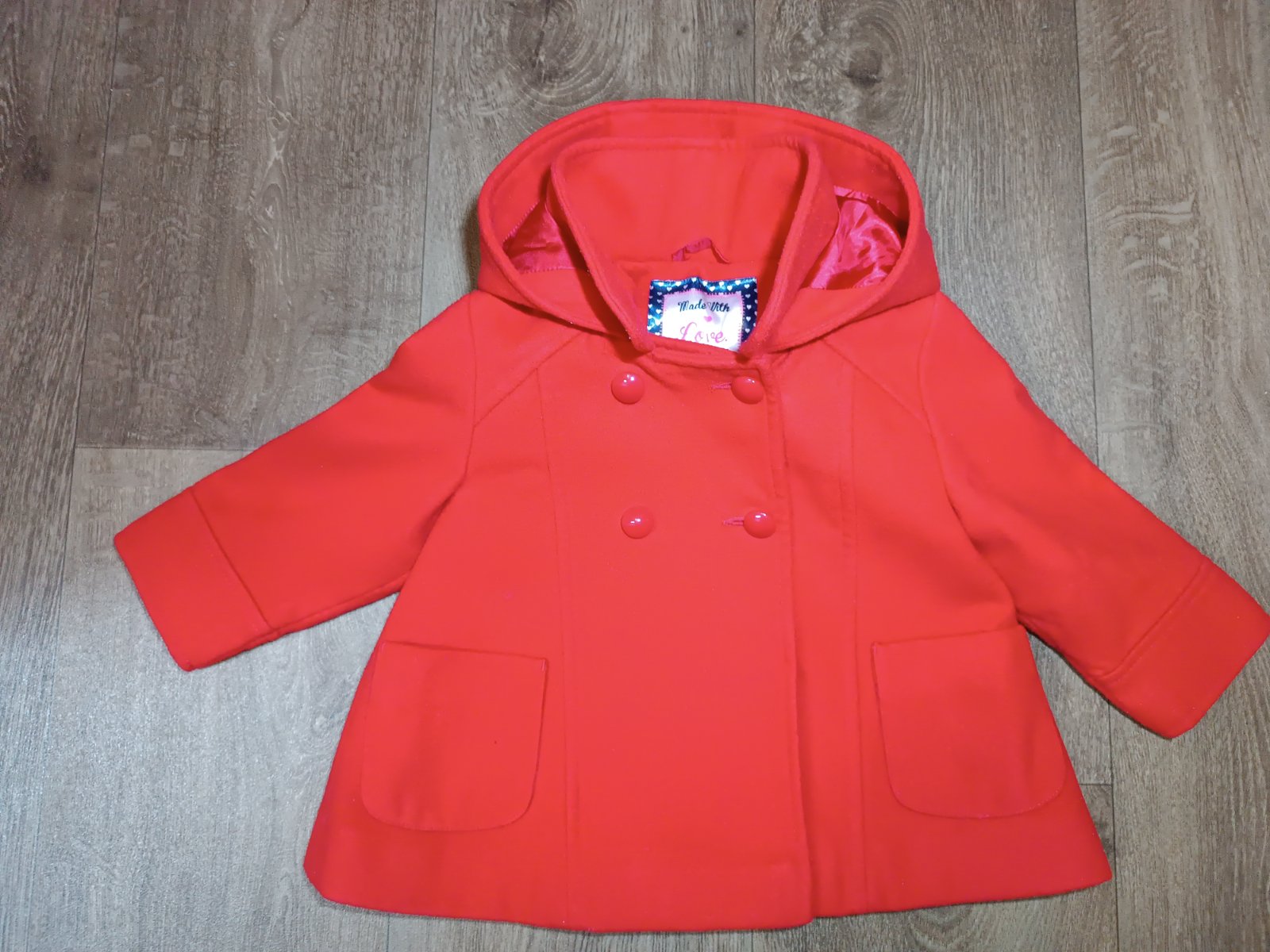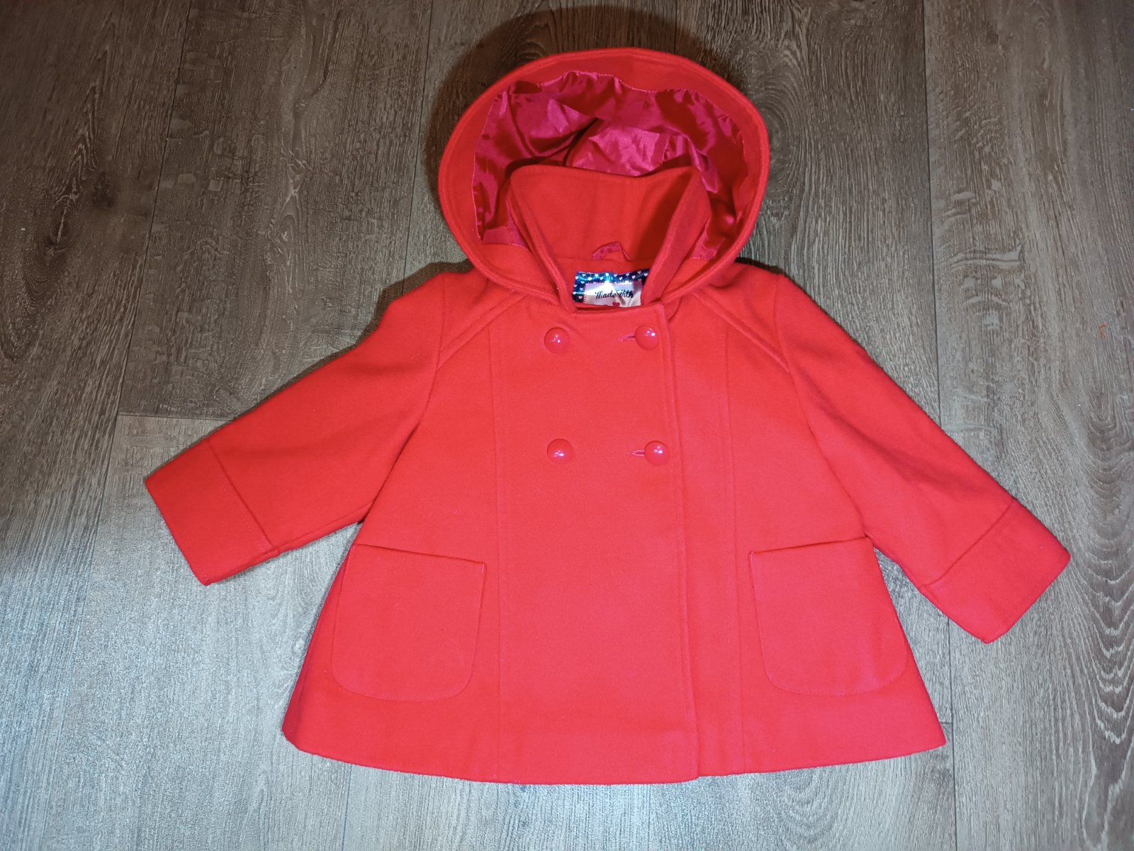 Prodám dívčí červený kabátek, zn. F&F, vel. 9-12 měsíců (80/86). S kapucí, límeček krásně ke krku, zapínání na 2 knoflíky plus patentku. V přední části 2 funkční kapsičky. Nošený příležitostně, krásný.