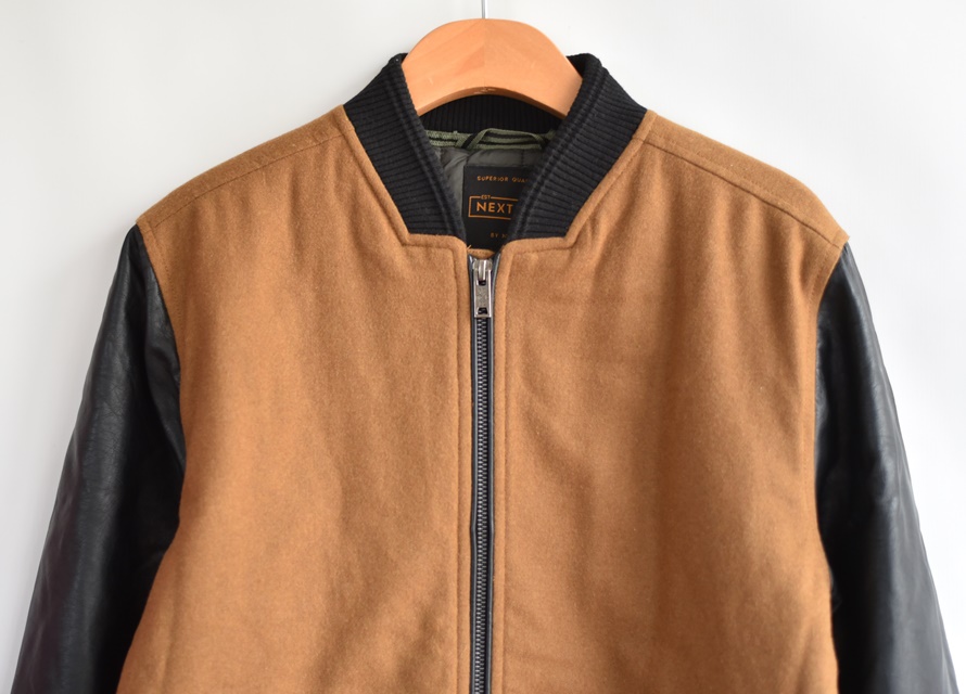 Hnědo černá, rukávy koženkové. Bunda je lehce vyteplená. Přechodová.