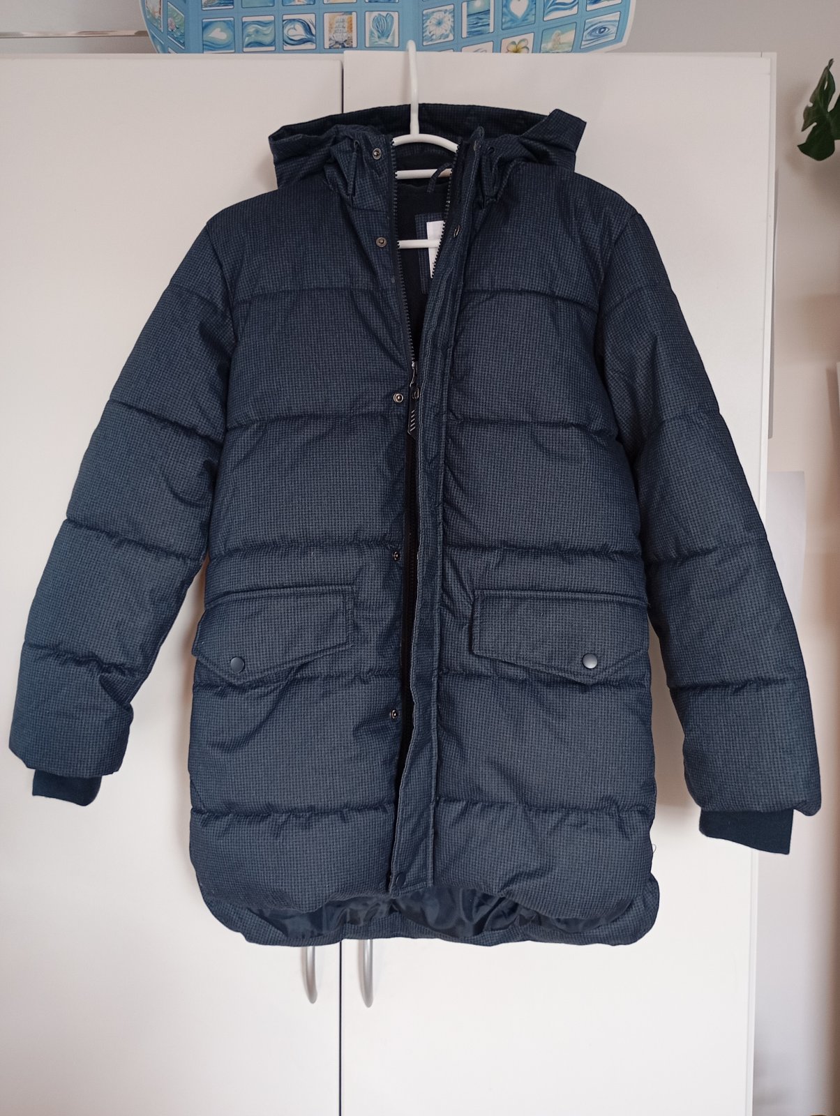 Naprosto skvělá zimní bunda v TOP STAVU! Je delší pod zadek, teplá, uvnitř fleece a hladká podšívka. Zapínání na zip a i na knoflíky. Dvě prostorné kapsy, stahovací kapuce, v rukávech protisněhové zarážky. Bunda byla dražší a je ve skvělém stavu. Určitě ji doporučuji.