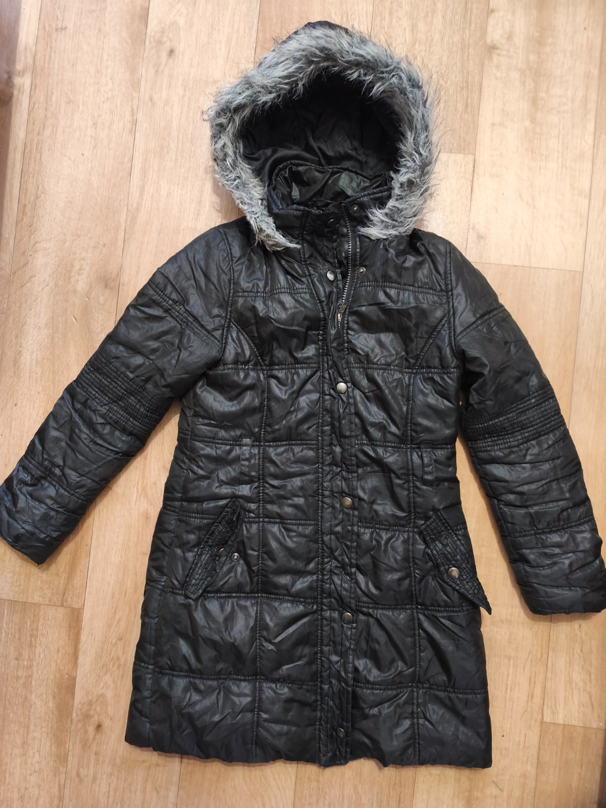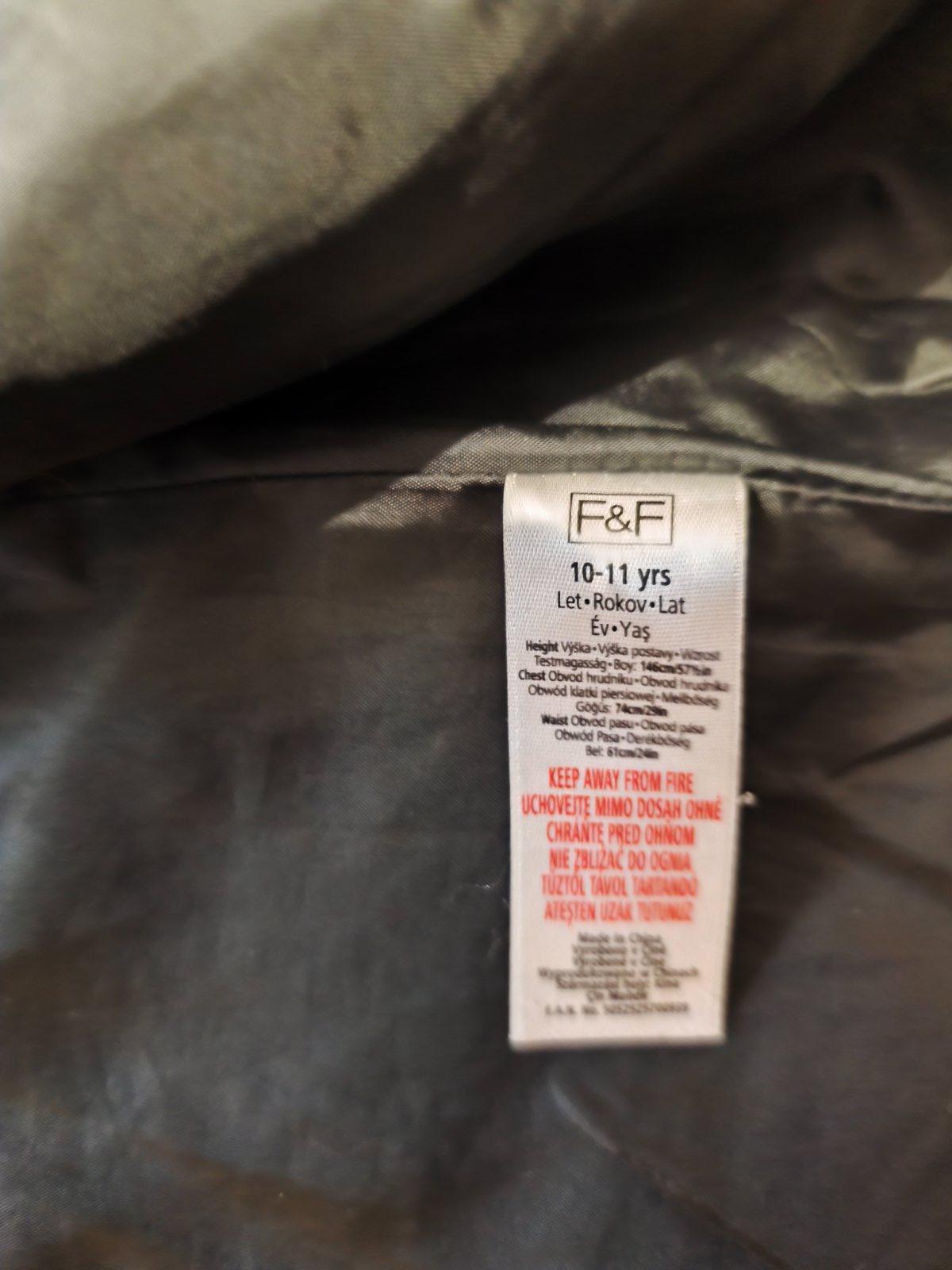 Prošívaná dlouhá zimní bunda Zn. F&F. Velikost 146 - rozměry a stav na fotkách.