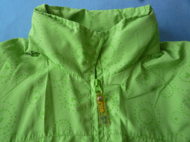 Hezká bledě zelená větrovka s kapucí. Má 2 kapsy a dole se dá stáhnout. Kapuce se dá srolovat do límečku. Bez vad.