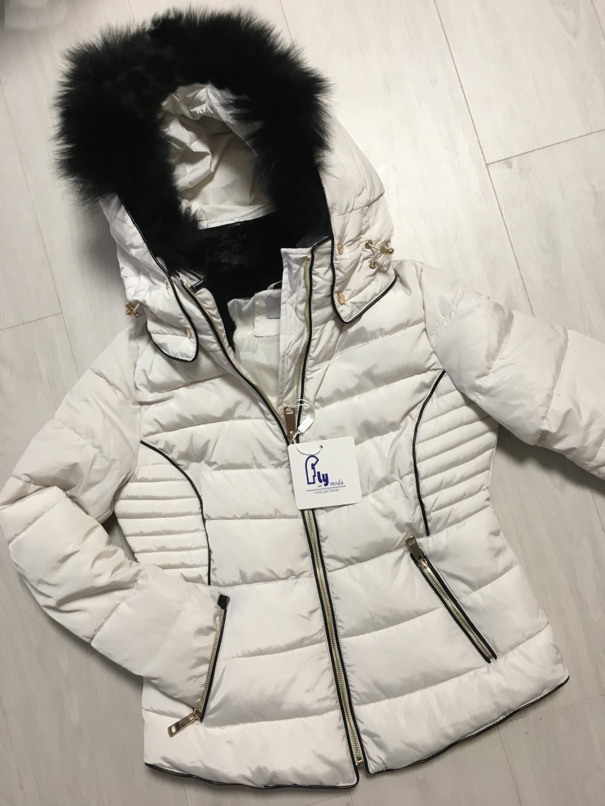 Velmi teplá, prošívaná, vypasovaný střih, na odepínající kapuci kožešinka.