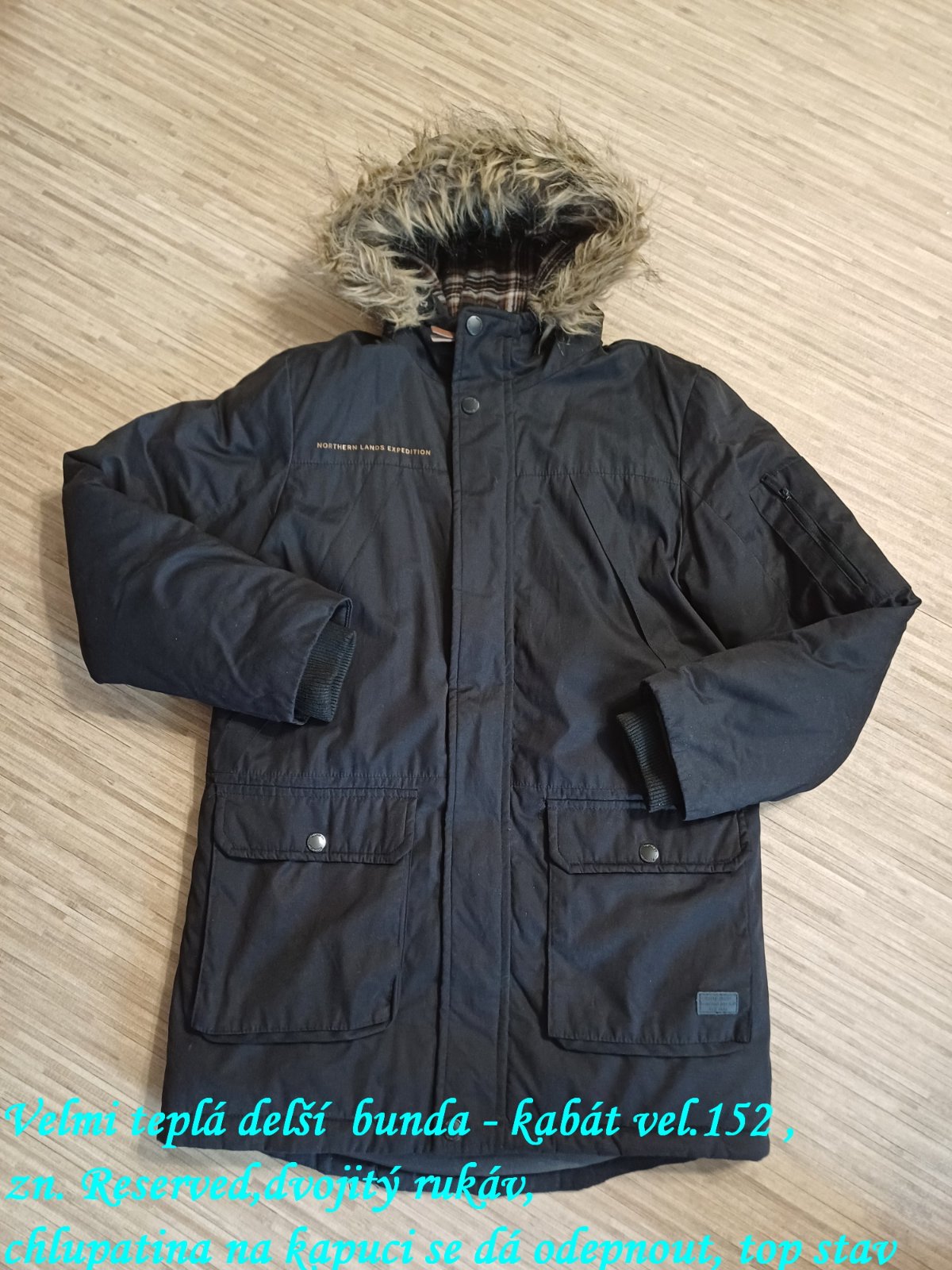 Delší bunda-kabát Reserved vel.152,chlupatina na kapuci se dá odepnout,dvojitý rukáv,top stav