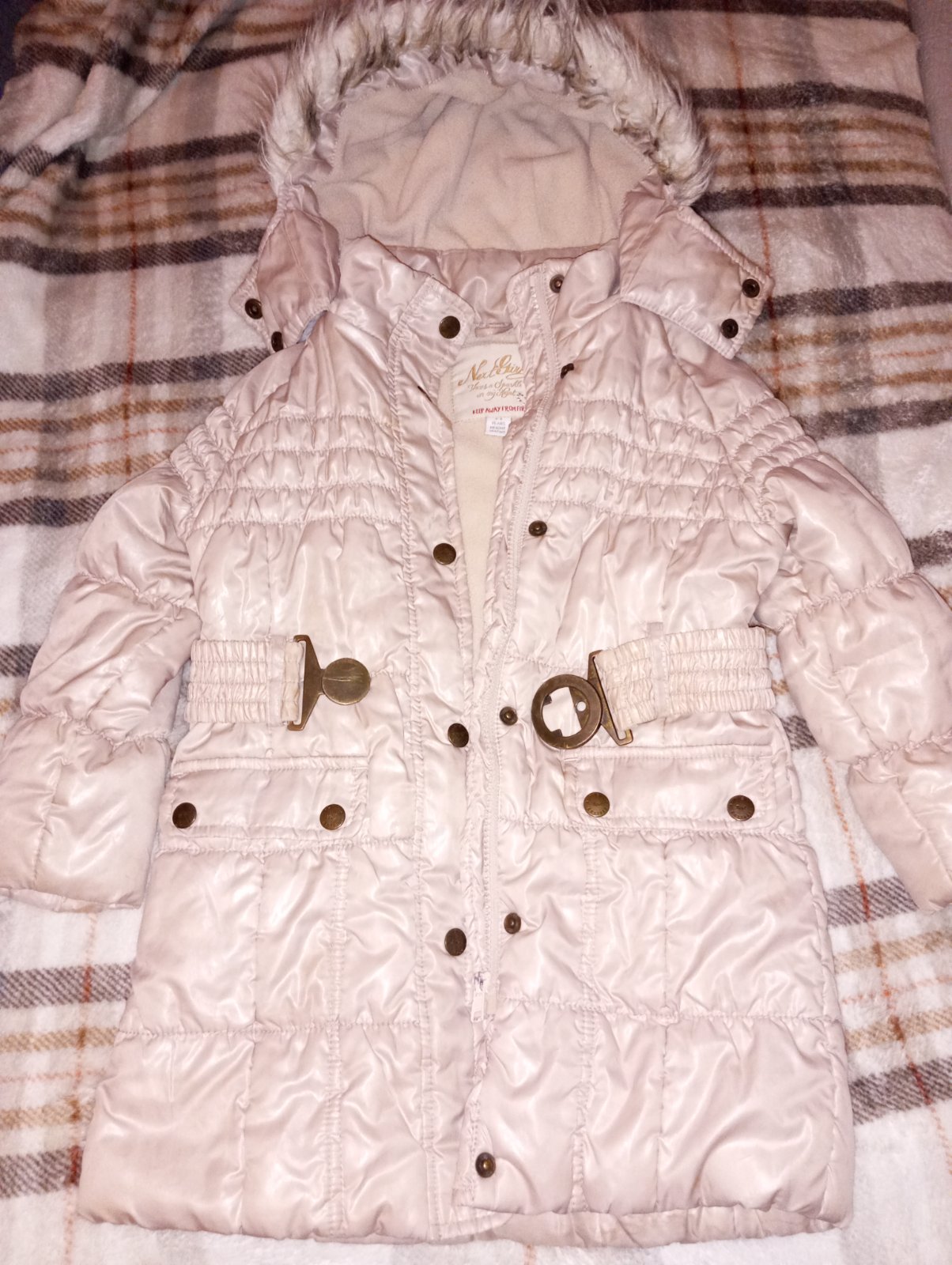 Veľmi teplý kordový kabátik béžovej farby s peknými kvetinkovými vyšívanými aplikáciami. Určené pre dieťa vo veku 3-4 roky (nosili sme do 5 r.) Kombinácia s ružovou plyšovou podšívkou. Približné r...