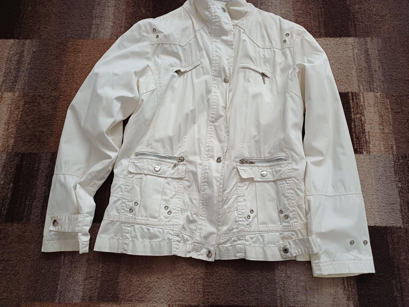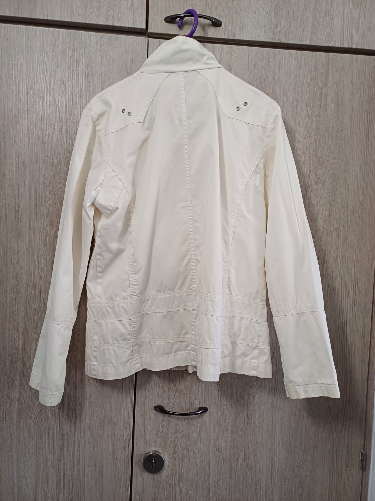 Jarní bunda, velikost odhaduji 44, s podšívkou, hodně kapes, délka 64cm, šířka v 54cm, šířka dole 57cm, rukáv od krku 73cm.